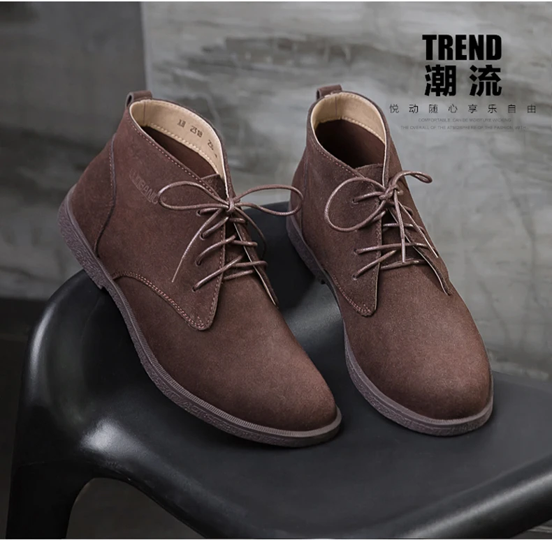 Новые мужские осенние модные трендовые замшевые сапоги с пряжкой на низком