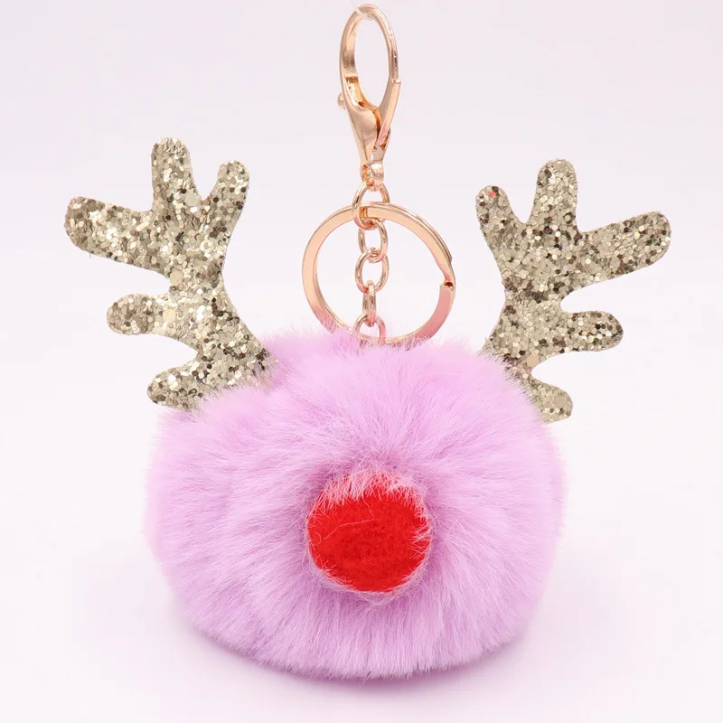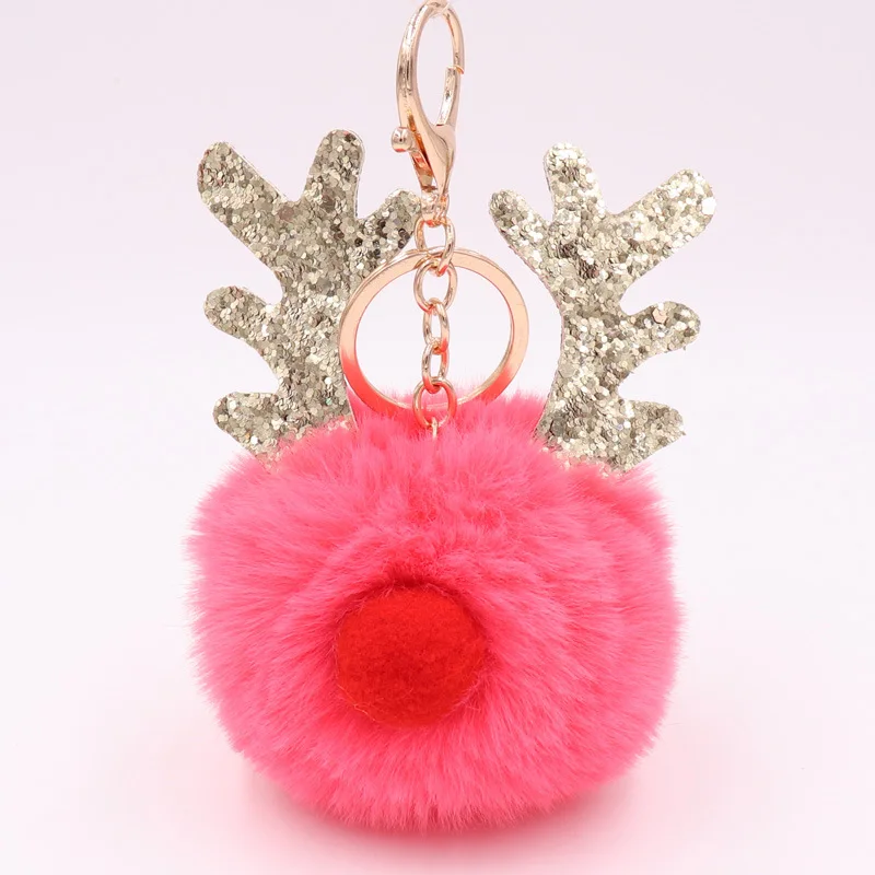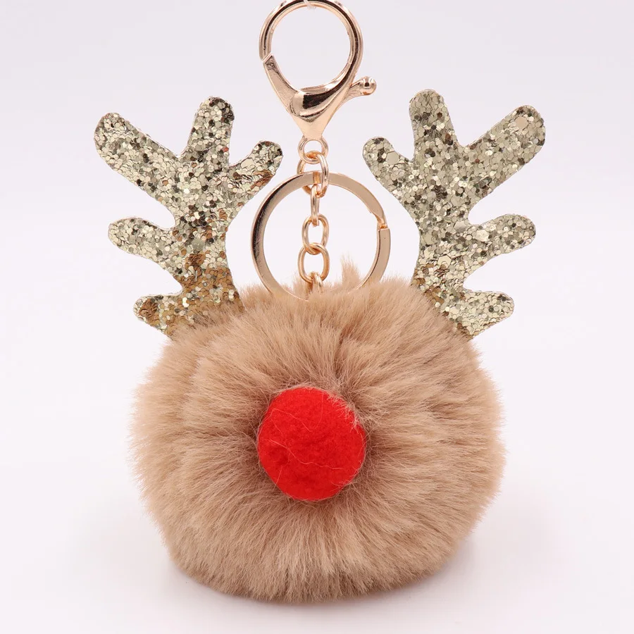 Новый Блестящий Рождественский брелок для ключей в виде лося, женские Рождественские рога оленя, милые разноцветные помпоны, шаровые Автомобильные сумки, очаровательный подарок
