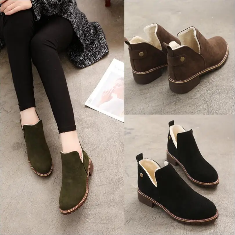 JX604/женские ботильоны; зимняя женская дизайнерская обувь на снежную погоду; женские замшевые Ботинки Martin на толстом каблуке с теплым мехом и плюшем; zapatos de mujer