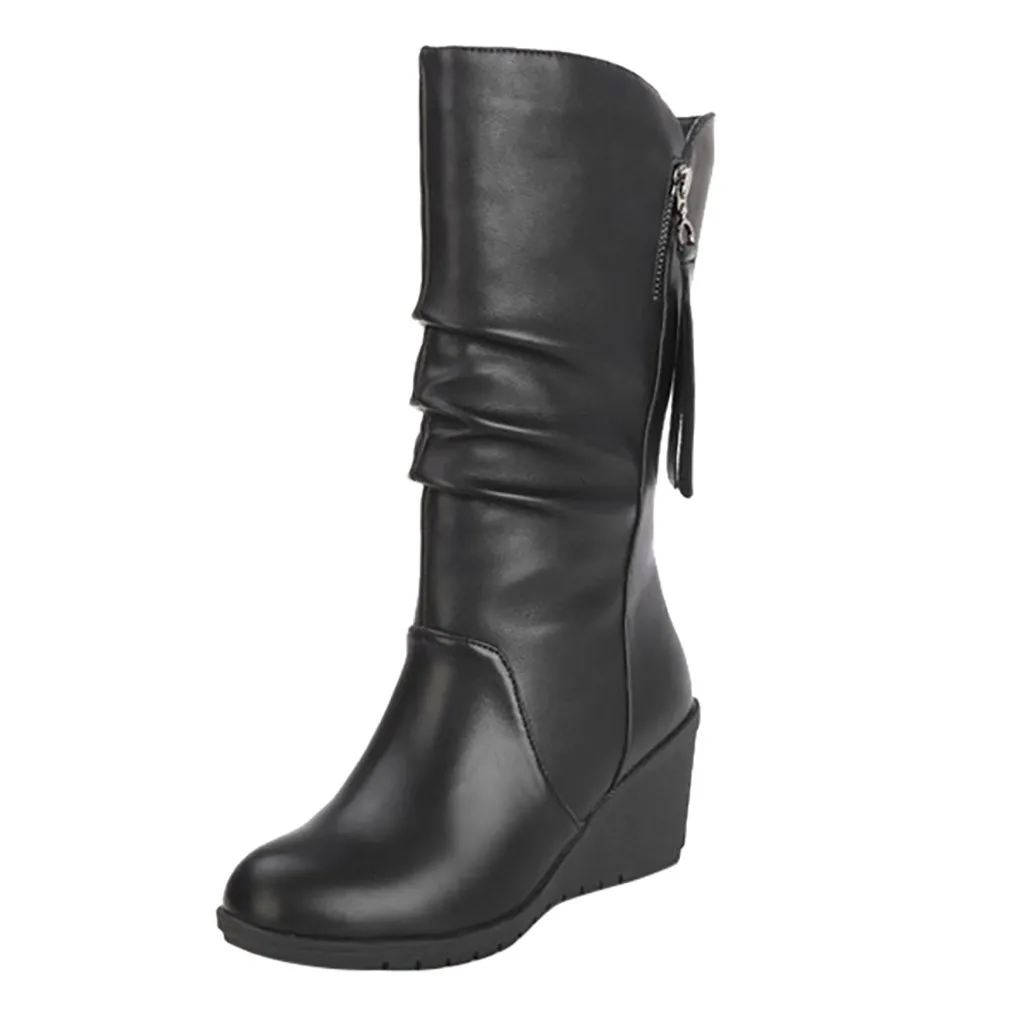 Модные однотонные слипоны с круглым носком; винтажные женские ботинки на танкетке