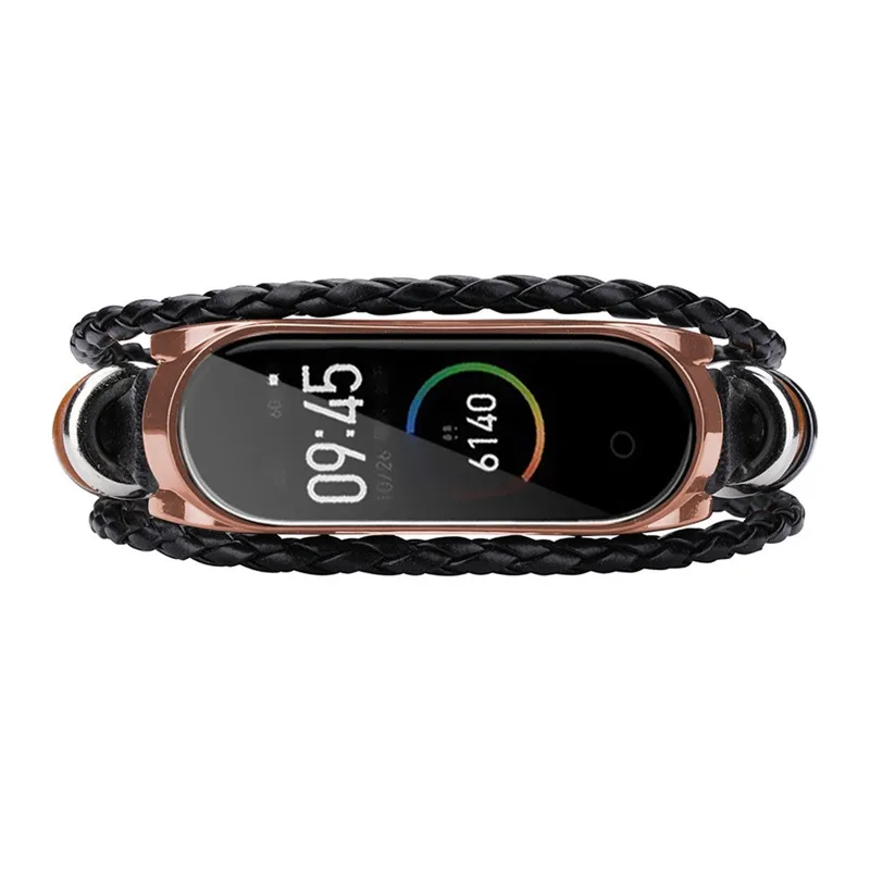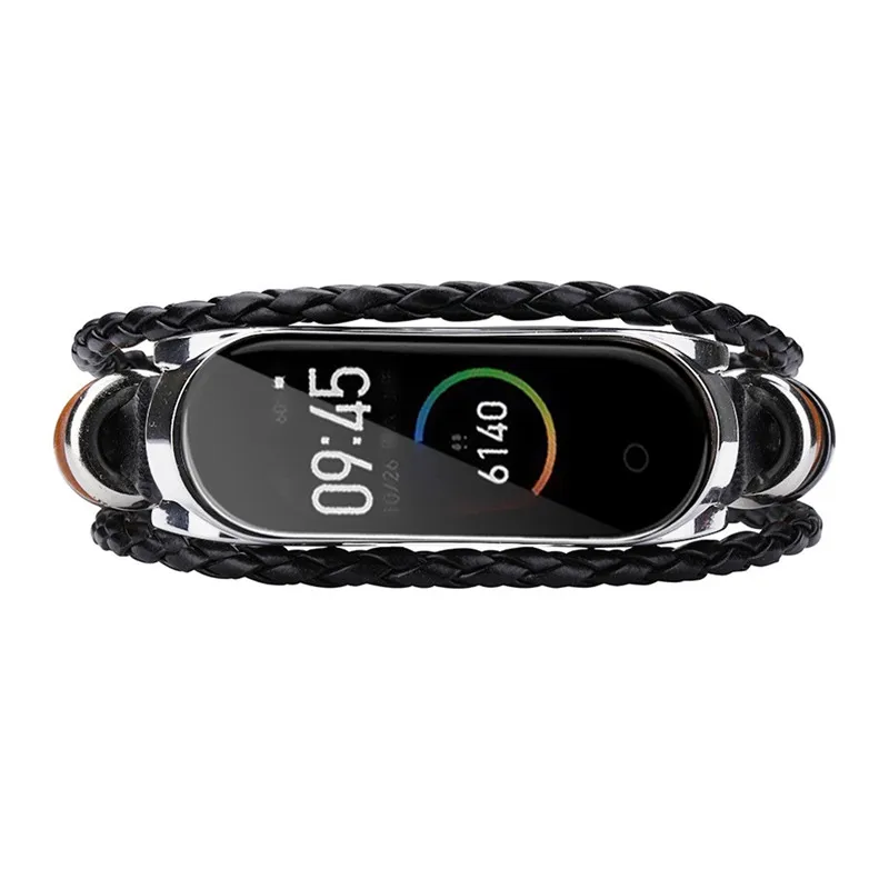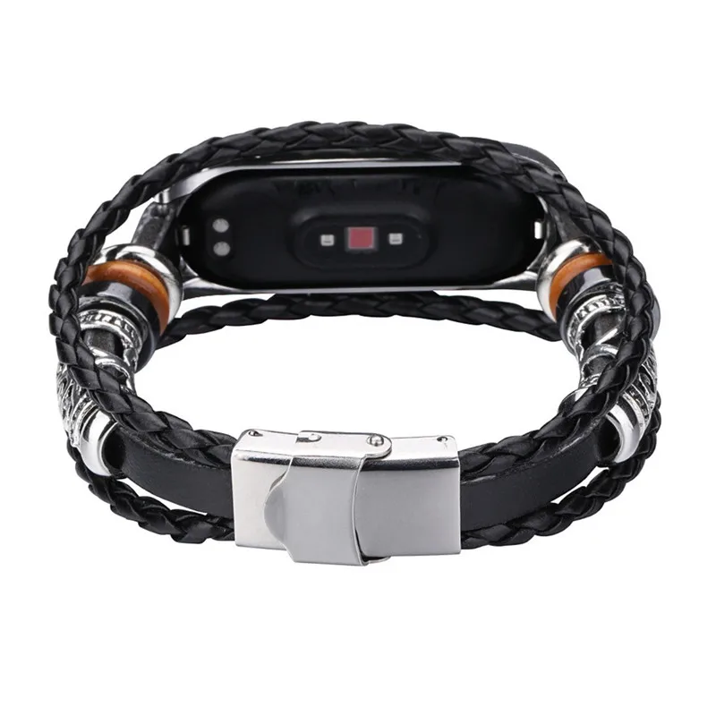 1 x модный кожаный браслет с бусинами, Плетеный ремешок для Xiaomi Mi Band 4