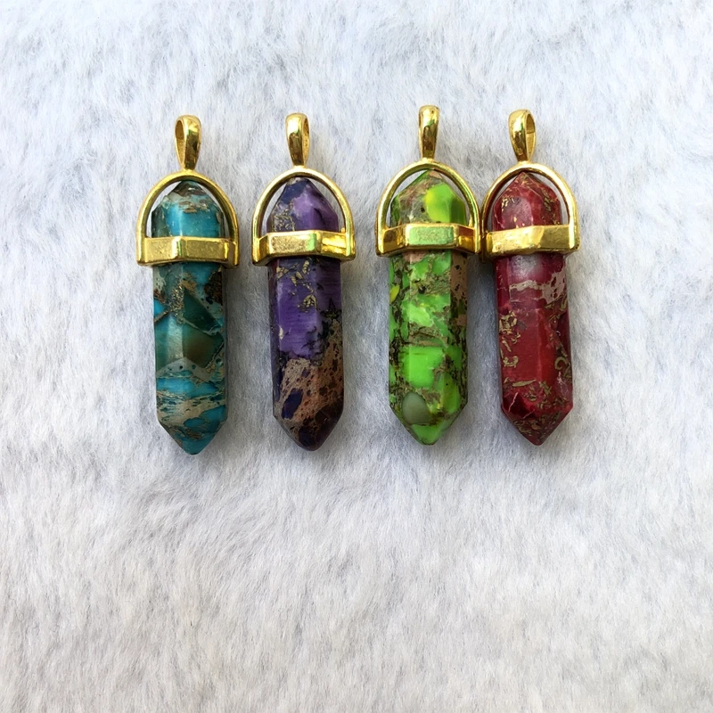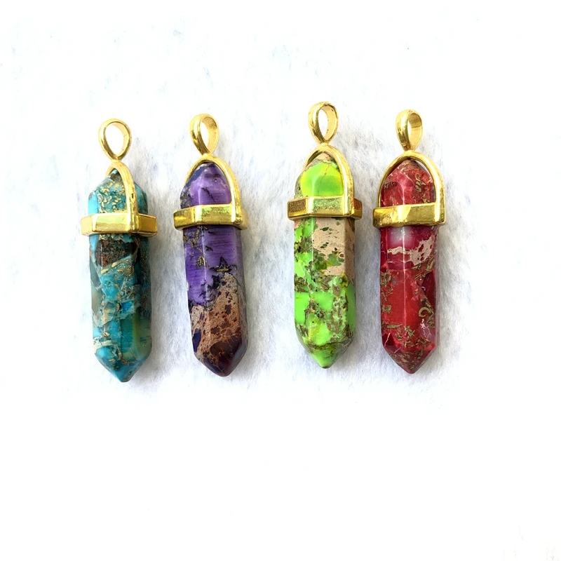 Оптовая продажа 4 шт натуральная императорская яшма бусины целебная чакра точка Penant,8x32 мм целебная точка камень, подвеска, бисер