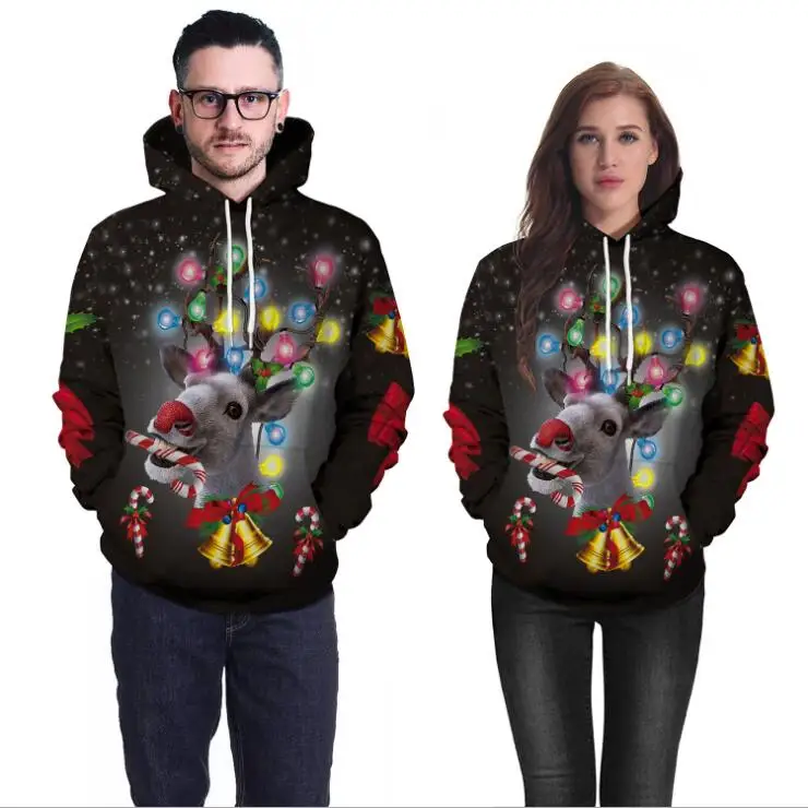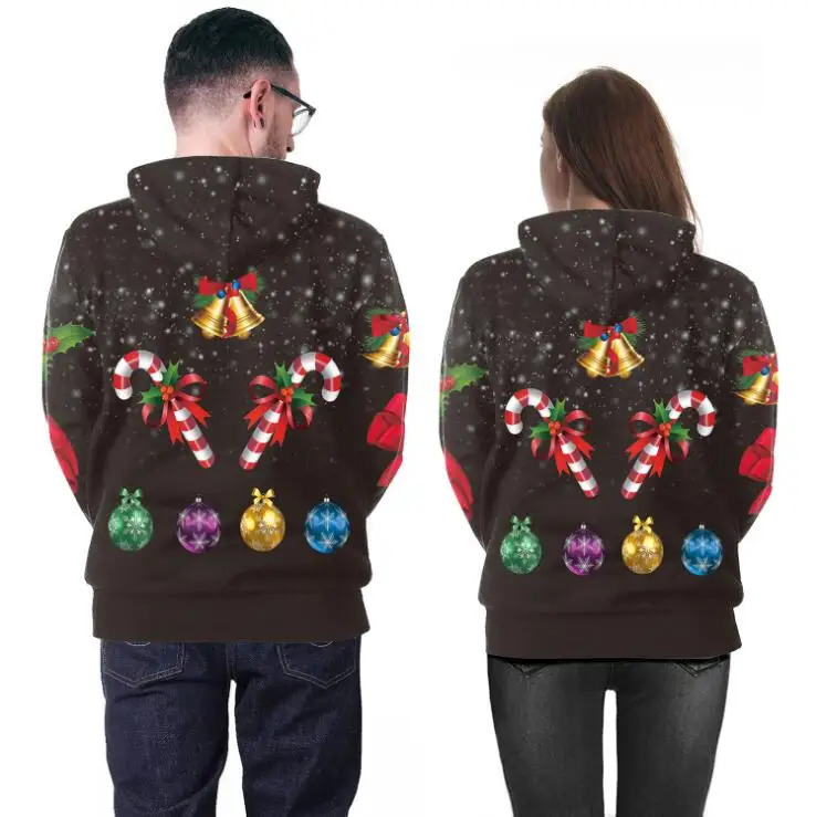Unisex 3D Sweater Women Winter Christmas Graffiti Pattern with Cap Long Sleeve Pullovers Ladies Loose Ugly Christmas Sweater