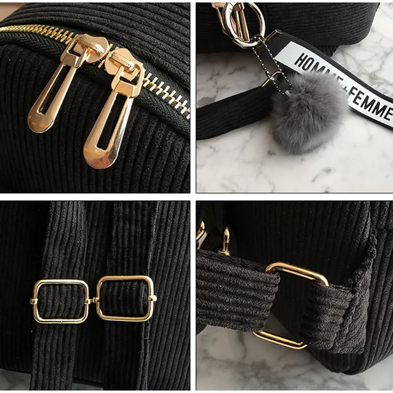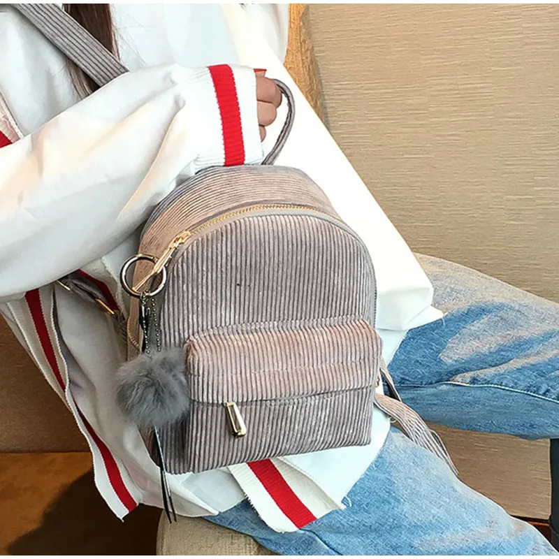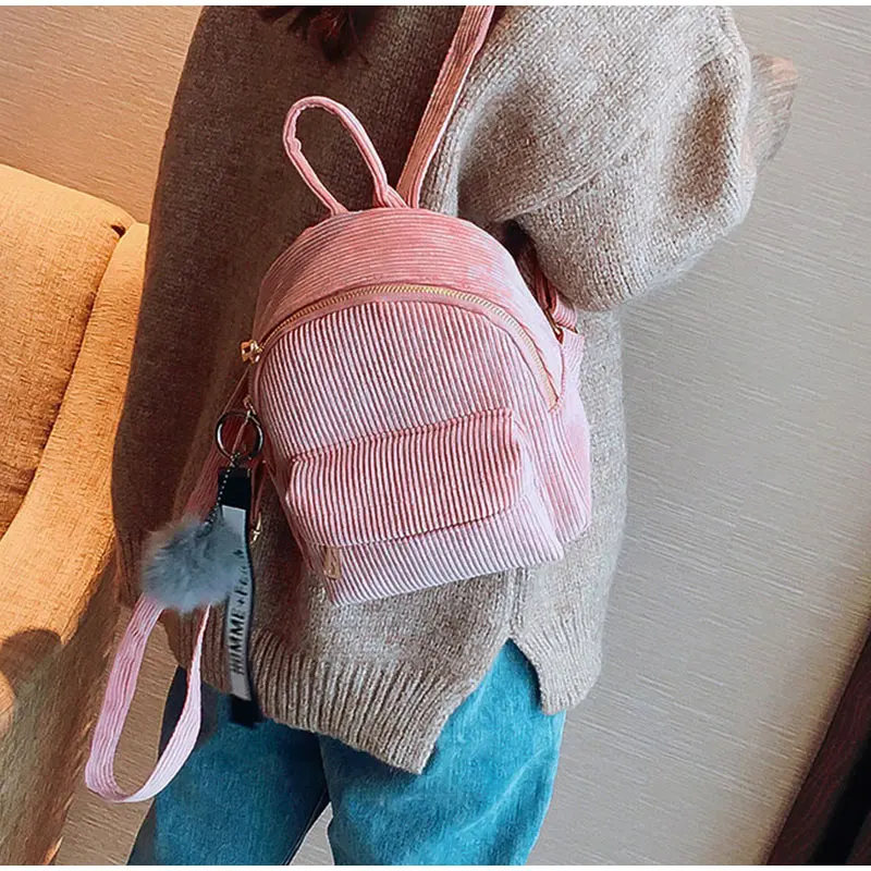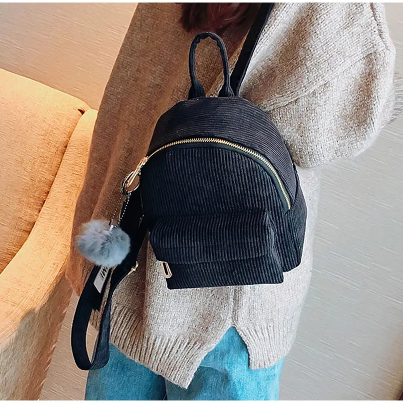 Модный вельветовый женский рюкзак 2020, Дамский Новый Дикий мини-рюкзак, Женская Повседневная маленькая школьная сумка для девочек, Сумка с подвеской в виде пушистого шарика