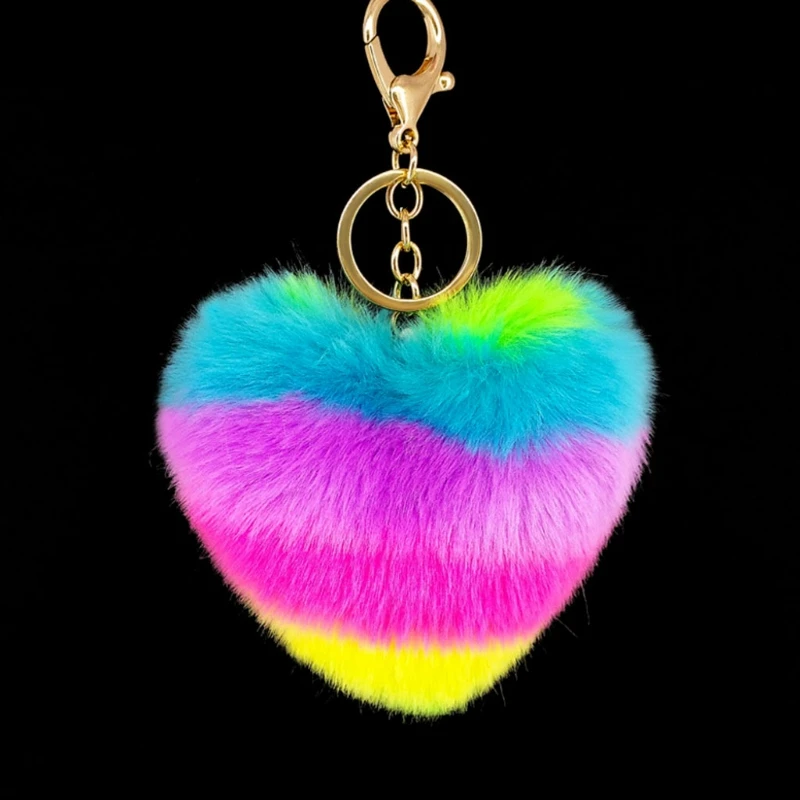 1 x Радужная металлическая цепочка для ключей с сердцем