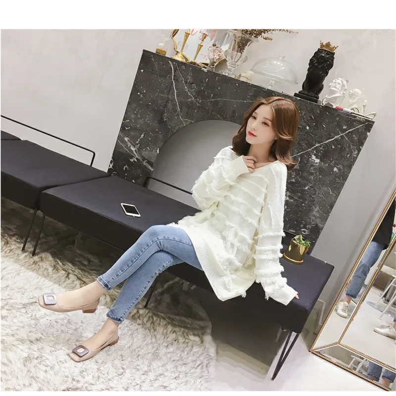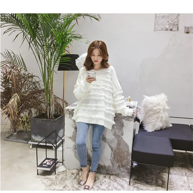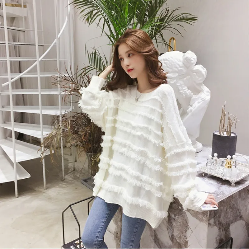 Qlychee Одноцветный женский свитер с кисточками топ Повседневный свободный вырез