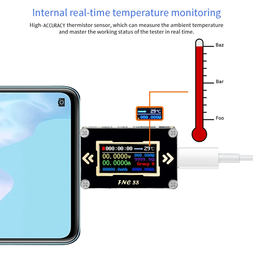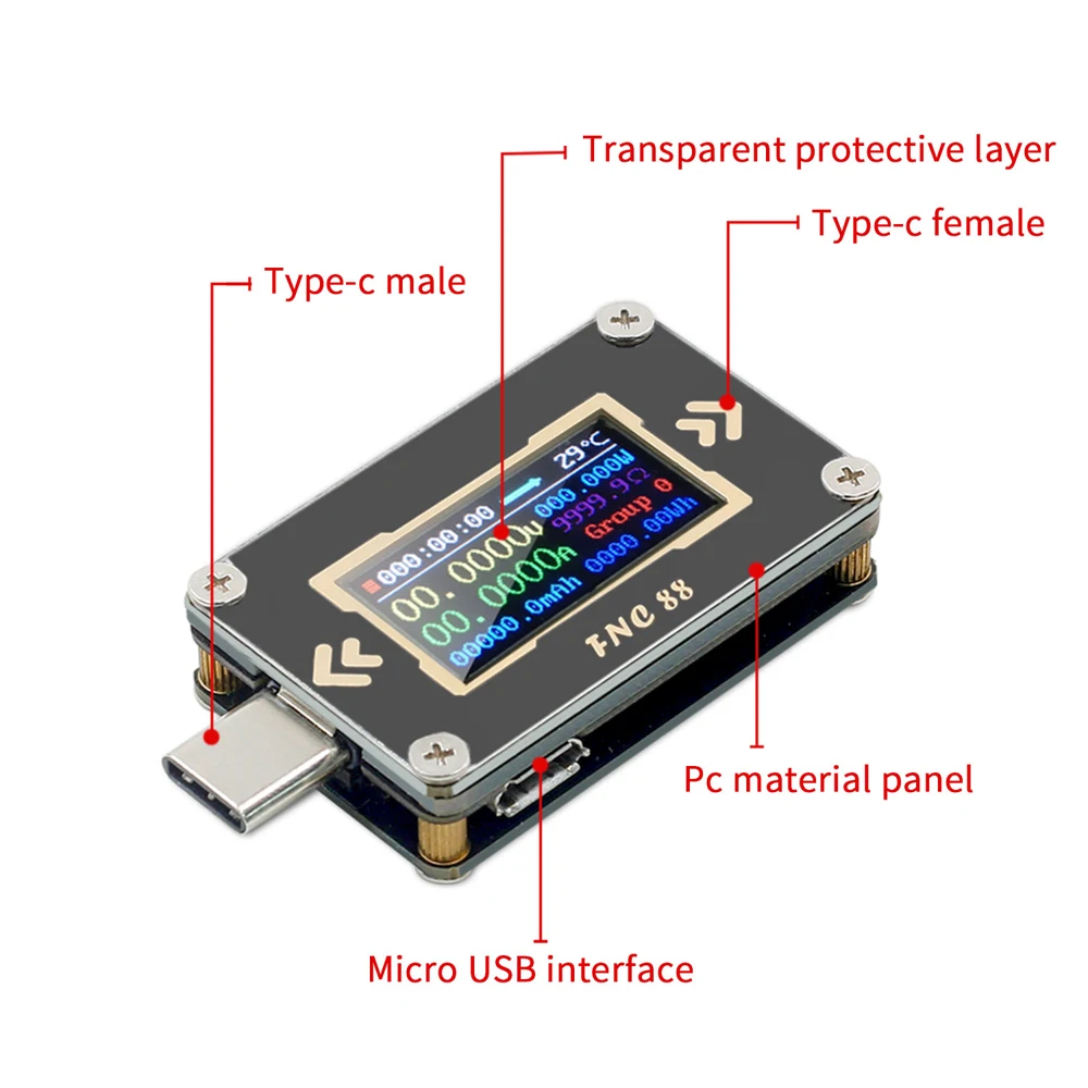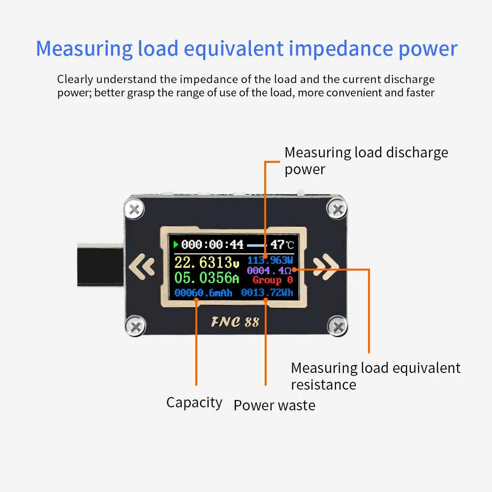 Питание от хранения, данные гарантированы. FNC88 имеет функцию питания. Когда мобильный источник питания отключен, он может хранить данные о емкости и энергии, что удобно для последующего просмотра и измерения мощности мобильного источника питания.