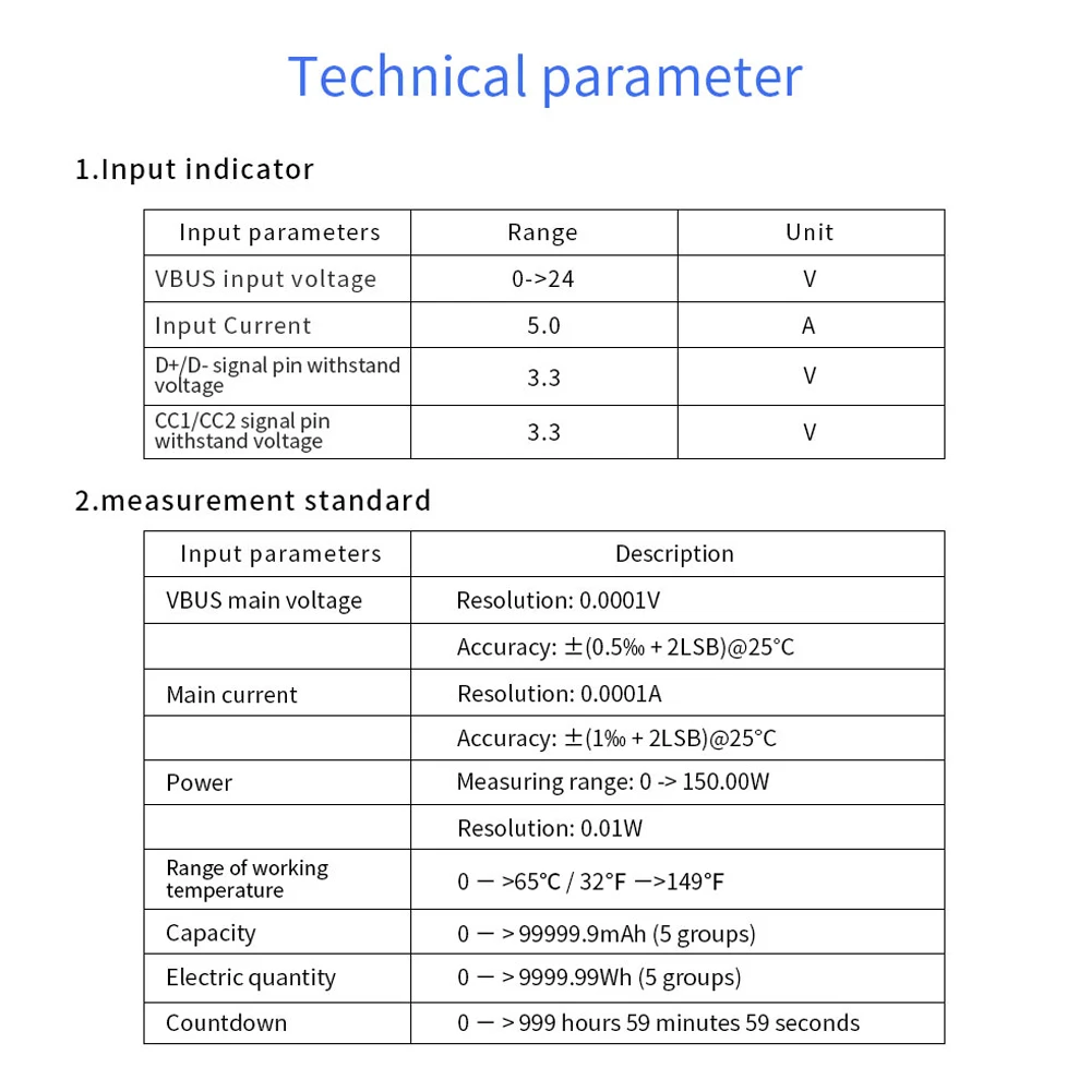1. Пожалуйста, не подключайте питание более 24 В к usb-тестеру.