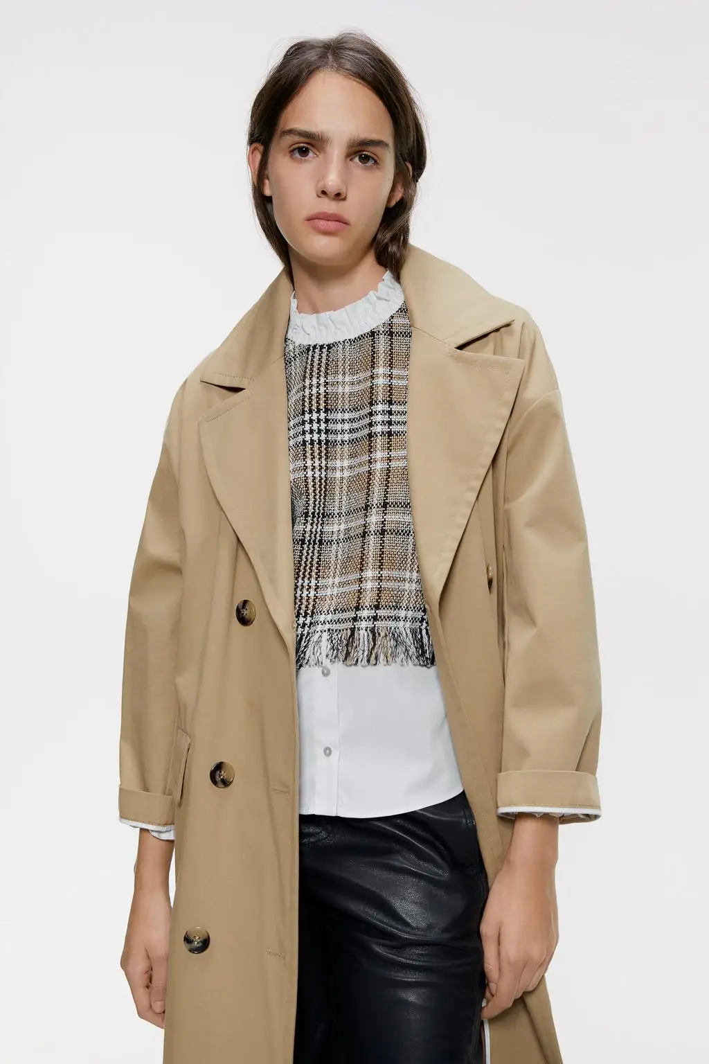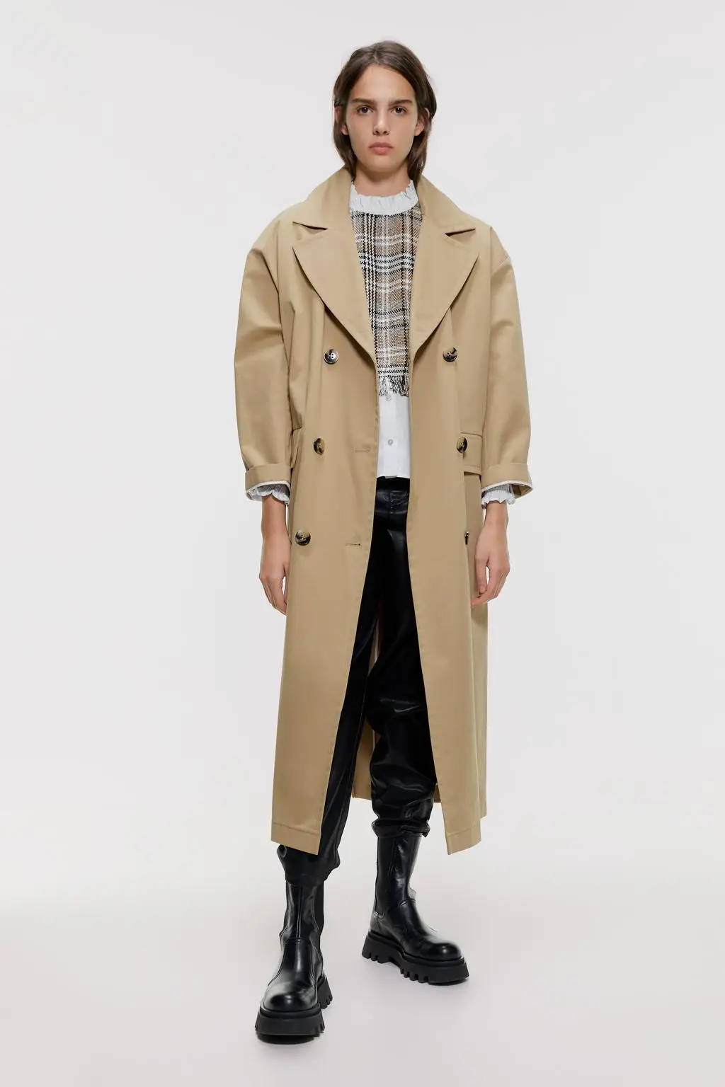 Женский Длинный Тренч в клетку DEAT облегающий клетчатый с длинным рукавом и