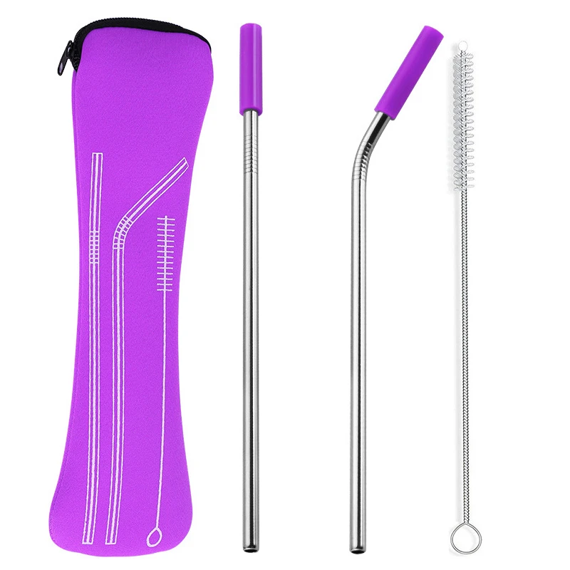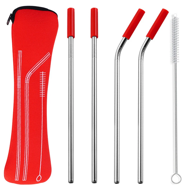 Многоразовые прямые согнутые соломинки из нержавеющей стали с силиконовыми наконечниками