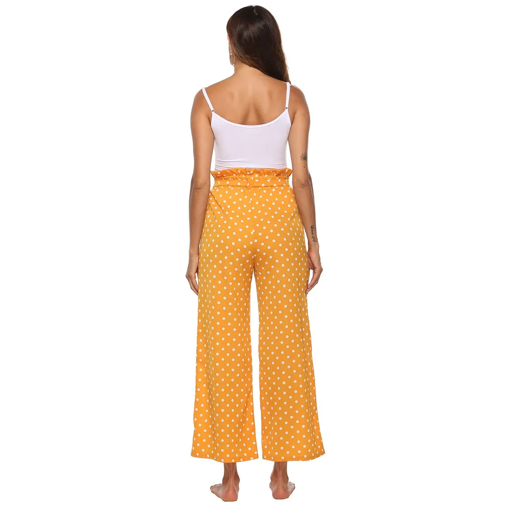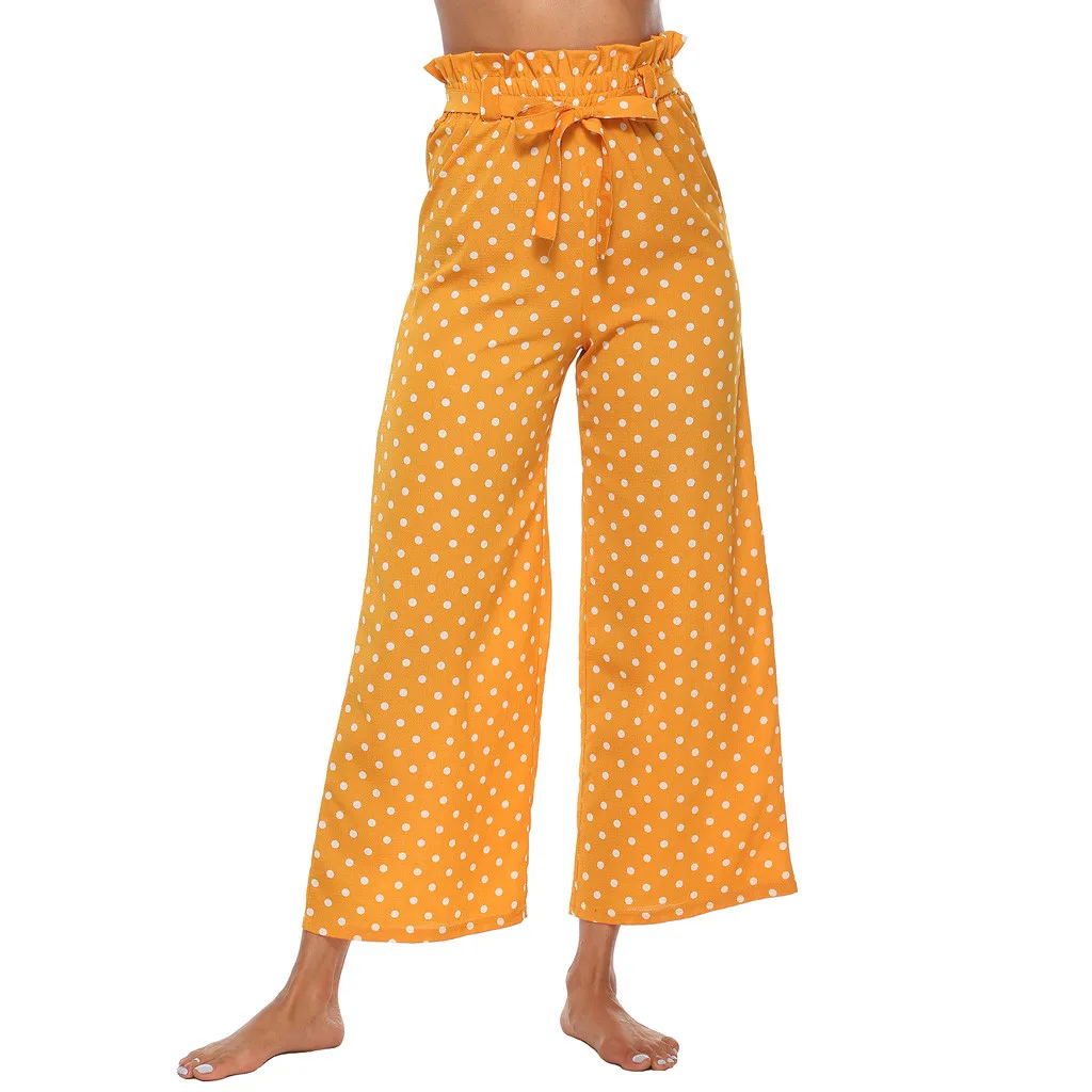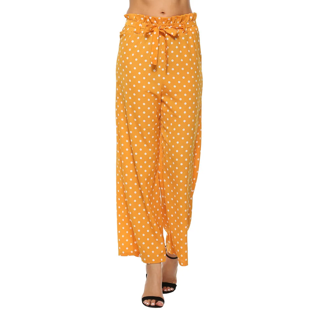 Женские брюки с высокой талией, с принтом в горошек, легкие брюки, длинные брюки, повседневные брюки