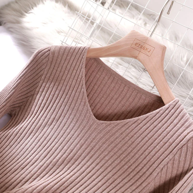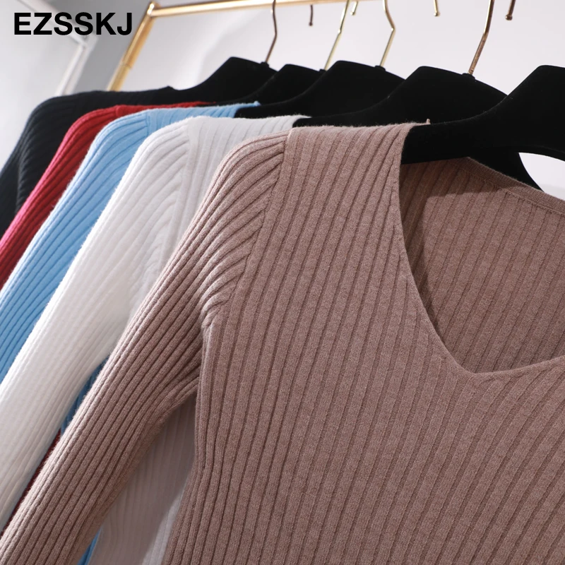 Winter Basic Knitted Tops Women Fashion Hot Sales Design Skin Tight V Neck Knitted Sweater Pink Gray White Black Blue O014