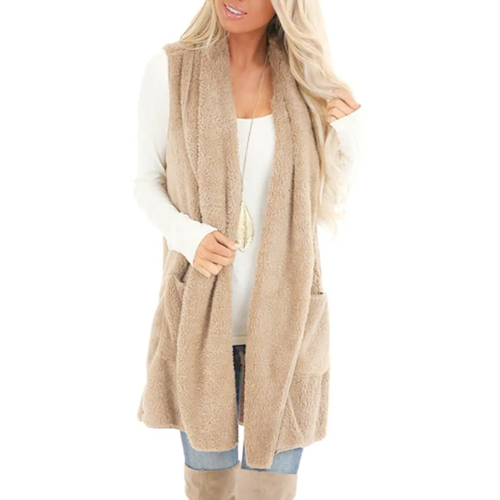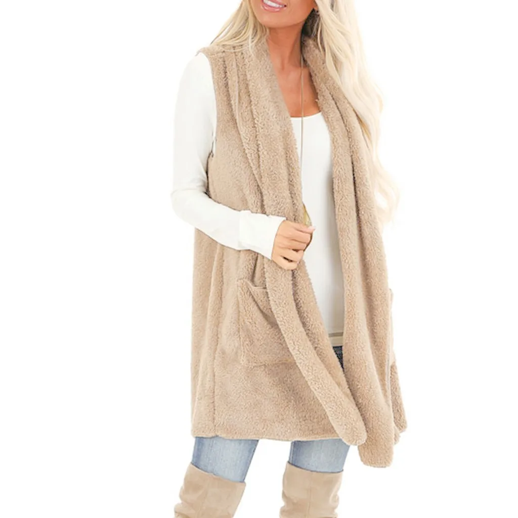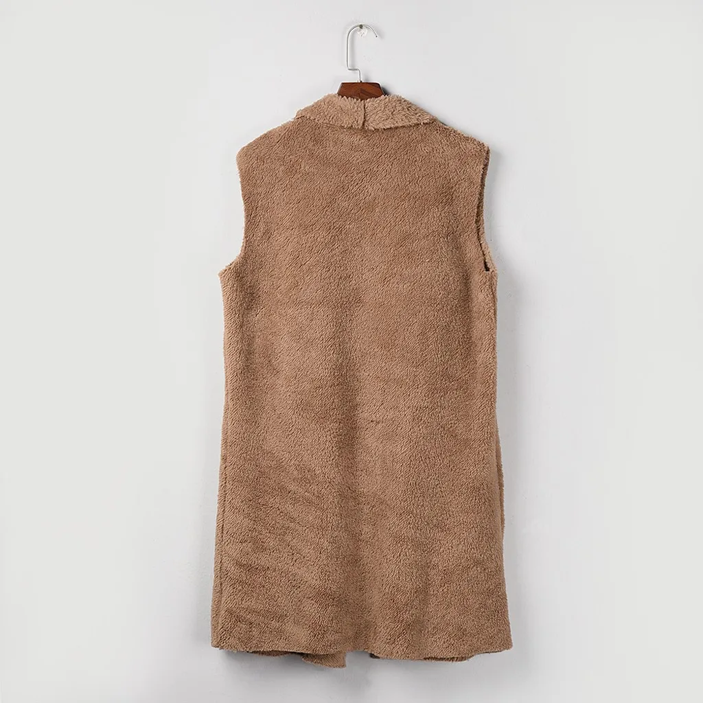 Женский кардиган из искусственного меха без рукавов, винтажный мохнатый жилет, куртка, длинное пальто