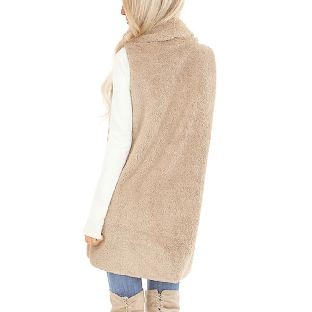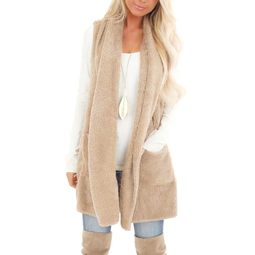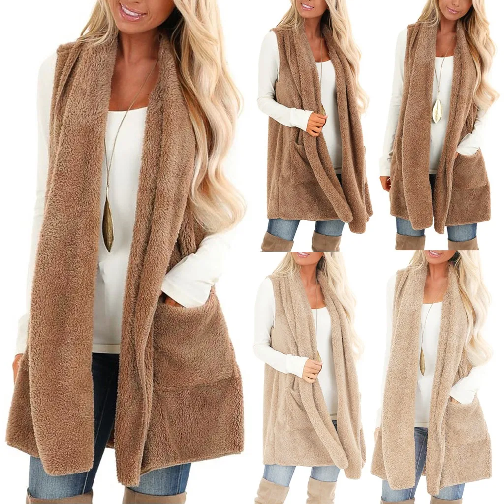 Женский кардиган из искусственного меха без рукавов, винтажный мохнатый жилет, куртка, длинное пальто