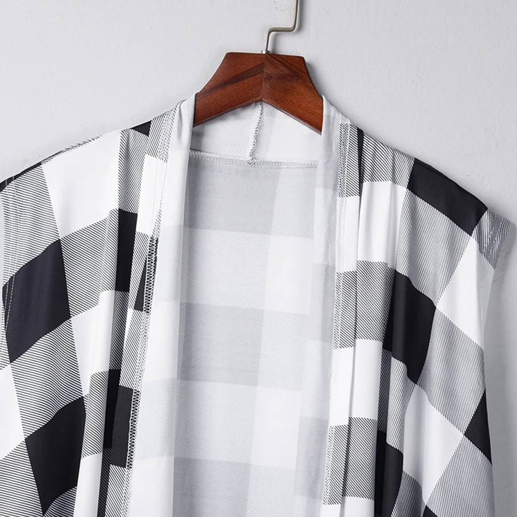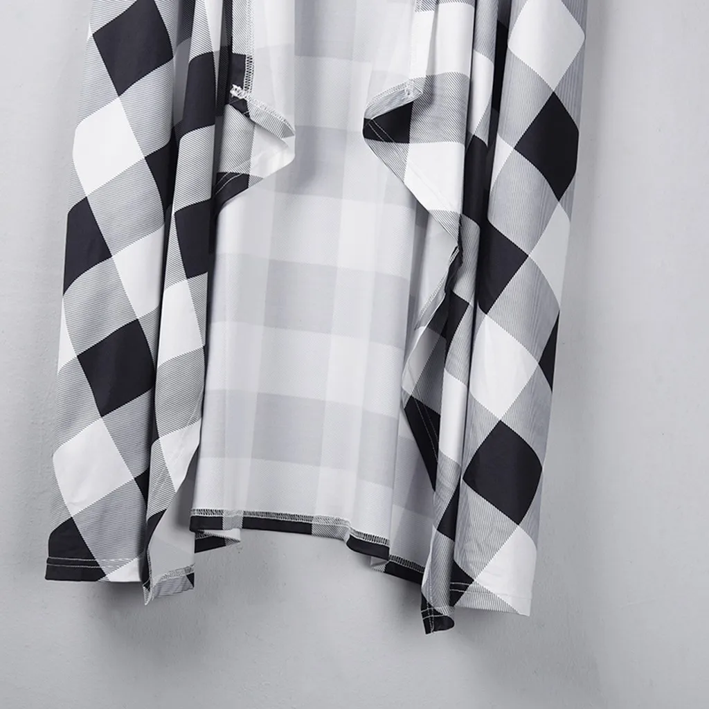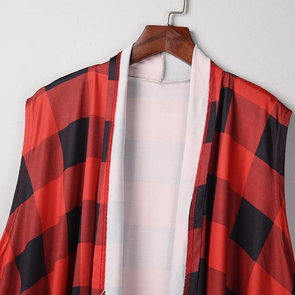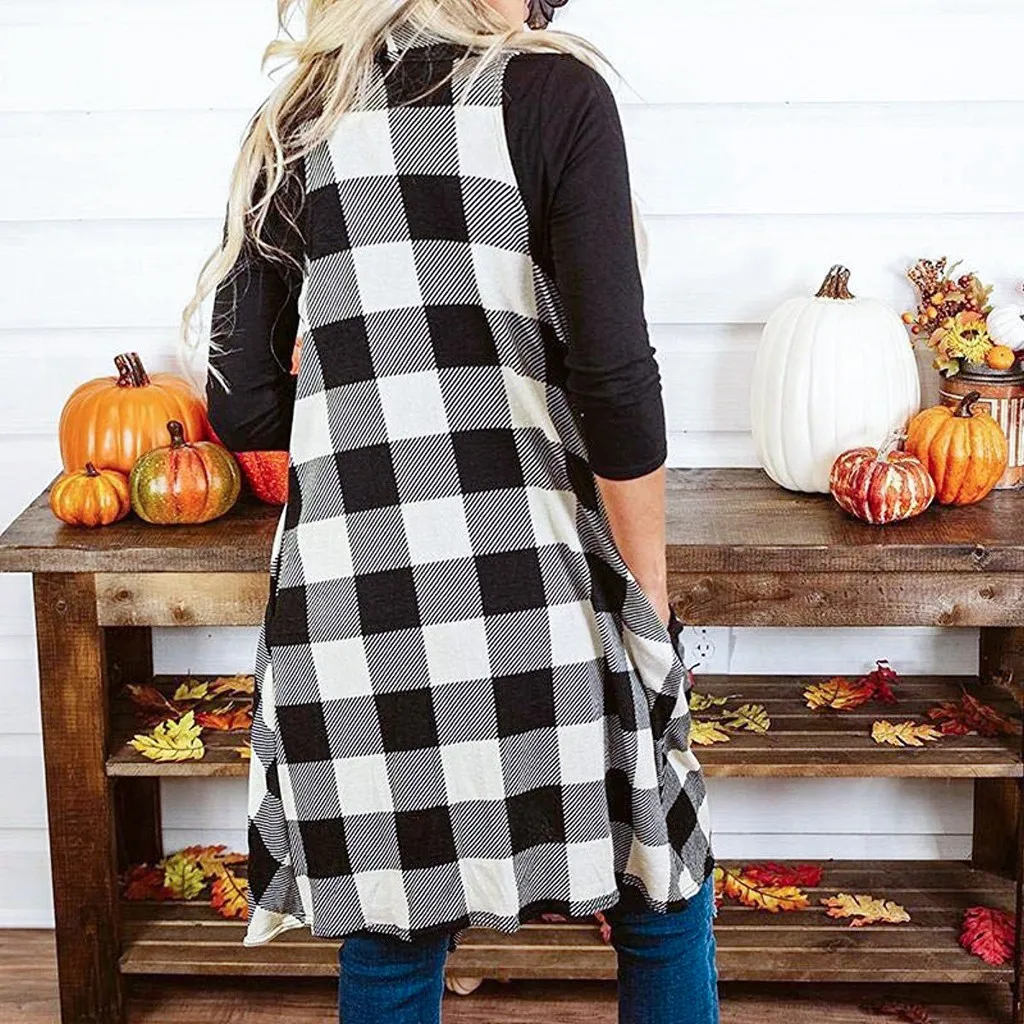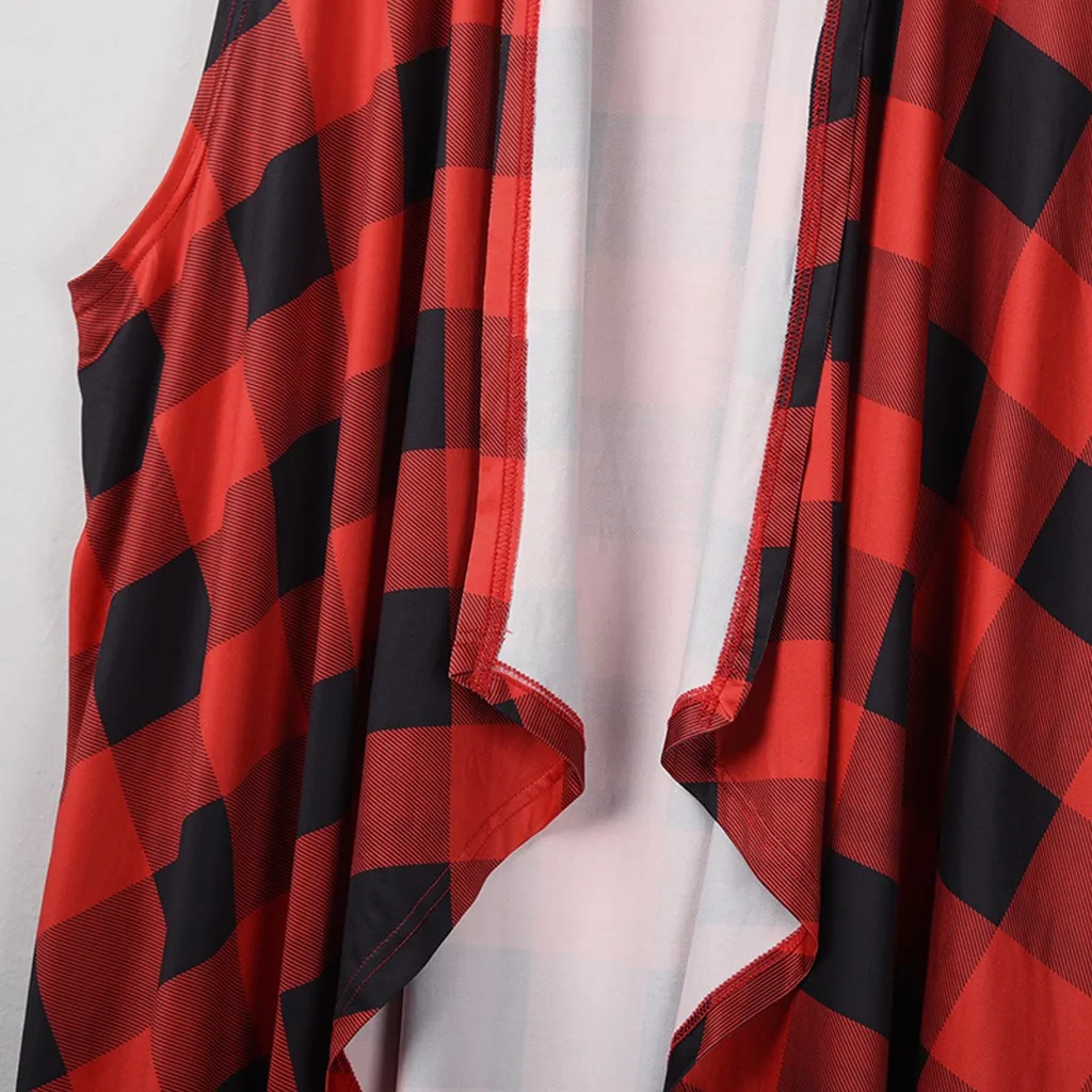 Женский клетчатый открытый передний кардиган без рукавов с карманами и драпировкой, легкий жилет, пальто