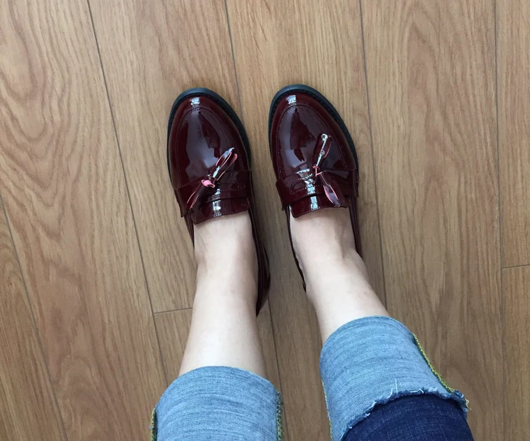 Высококачественная женская обувь из лакированной кожи; Цвет черный, бордовый; Женские туфли-оксфорды; Vintag; Женская кожаная обувь на плоской подошве; Zapatos Mujer