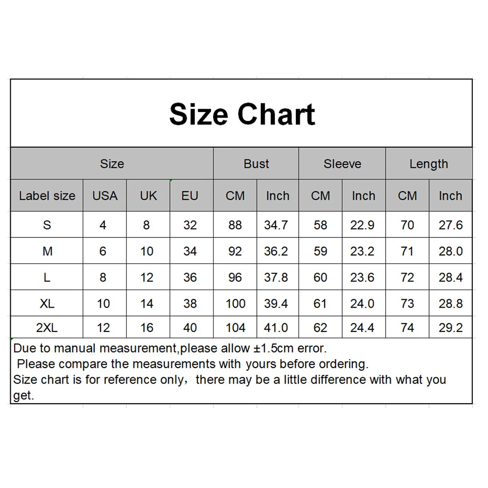 [Наш Размер S] Обхват груди: 88 см/34,7 ", рукав: 58 см/22,9", Длина: 70 см/27,6 "(прибл.)
