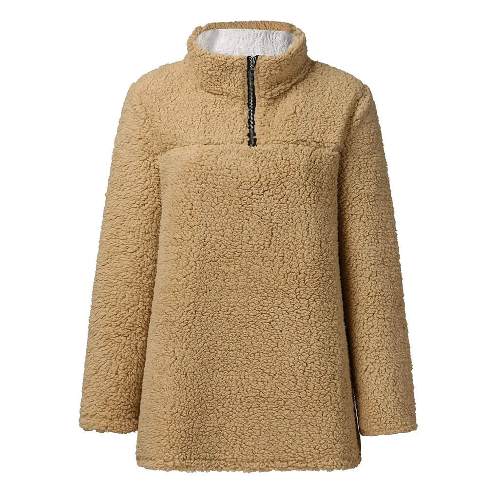 Женская теплая зимняя однотонная повседневная толстовка на молнии, пуловеры, верхняя одежда, топы