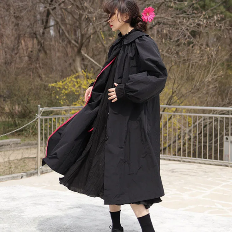 Женское двубортное пальто с отложным воротником уличная одежда черного цвета