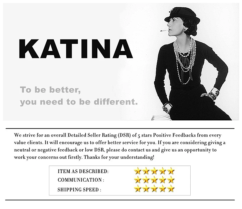Магазина KATINA Store работает с 06.08.2019. его рейтинг составлет 91.46 баллов из 100. В избранное добавили 8713 покупателя. Средний рейтинг торваров продавца 4.7 в продаже представленно 256 наименований товаров, успешно доставлено 1287 заказов. 164 покупателей оставили отзывы о продавце.