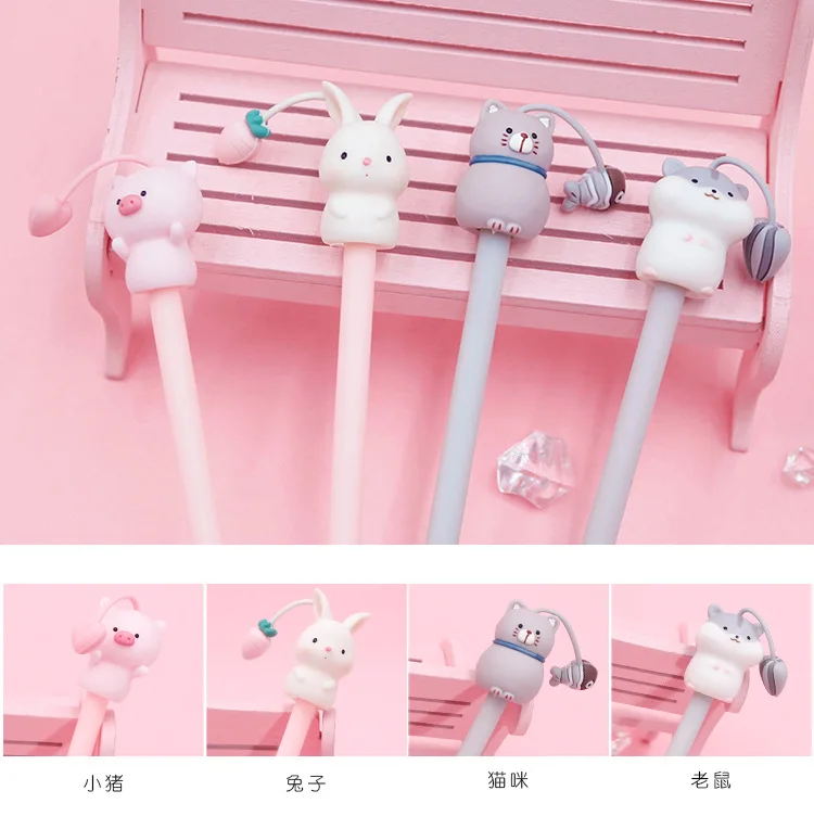 Милые ручки с персонажами мультфильмов кавайные животные гелевые черные чернила для ручки нейтральные ручки для письма дети девочки подарок школьные принадлежности корейские Канцтовары