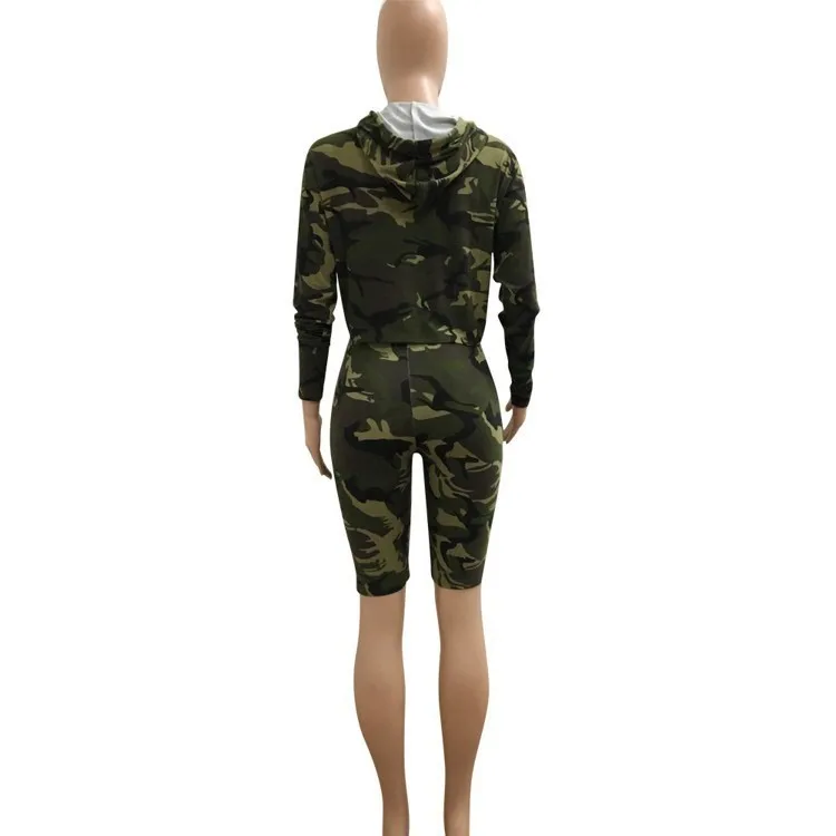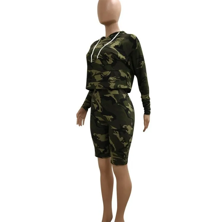 Армейский усталость Бермуды шорты и укороченный топ из двух частей набор женские с длинным рукавом камуфляж комплект с худи наряды WF786 <