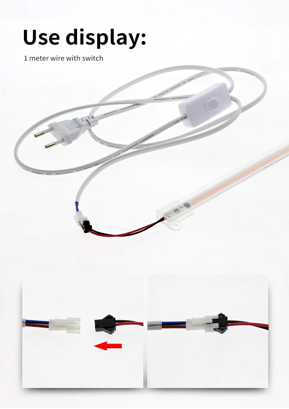 AC220V ЕС вилка силовой провод с разъемом выключателя электрический шнуры для светодиодный 1 м удлинитель питания для светодиодный