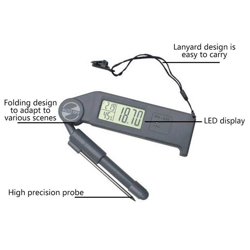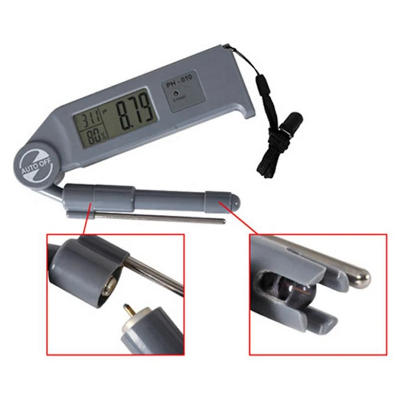 PH-010 складной трехв-1 измеритель кислотности разработан, чтобы быть уникальным и уникальным. Он имеет складную структуру, которая удобна для пользователей для регулировки угла измеряемой жидкости для удобной переноски. Он может автоматически откалибровать ошибку, вызванную изменением температуры во время измерения. Электроды заменяются, и один и тот же хост может быть повторно использован.