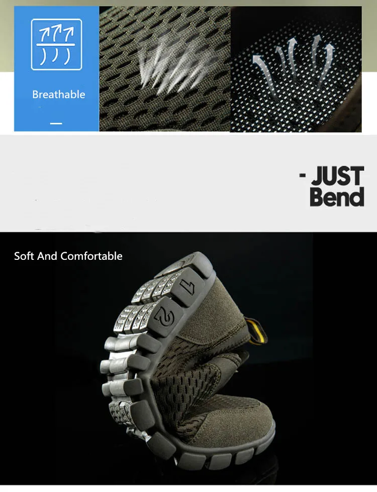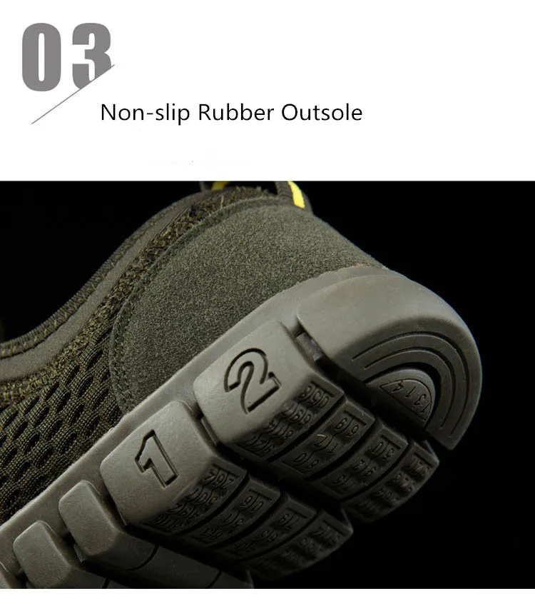 1. Резиновый носок для предотвращения столкновений 2. Подкладка из дышащей сетки 3. Нескользящая резиновая подошва
