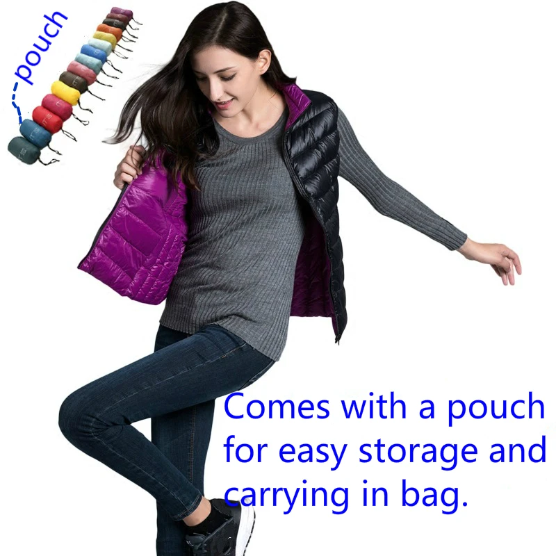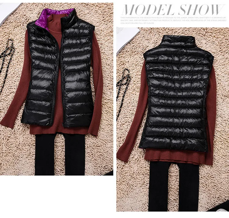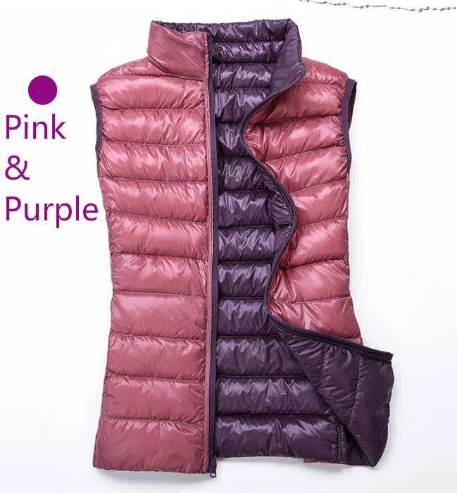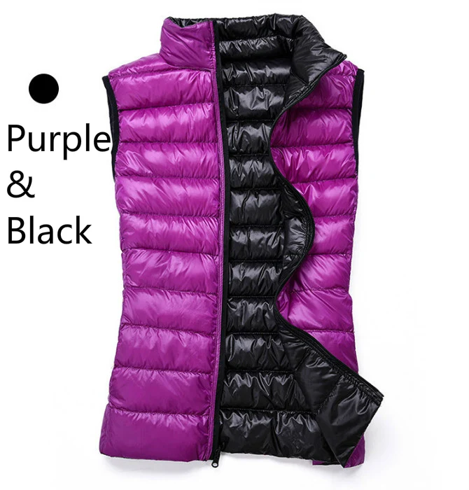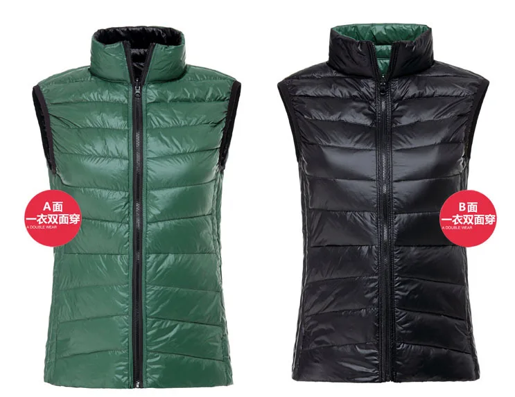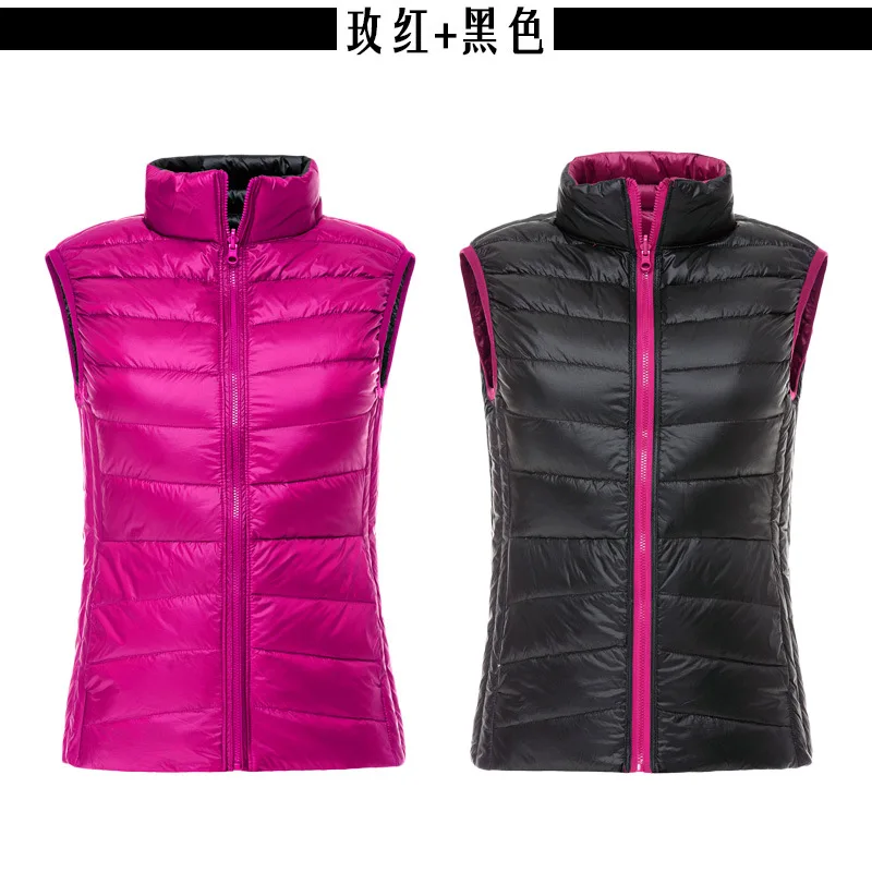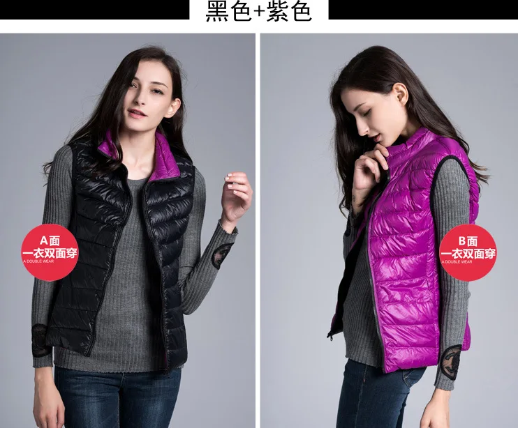 Женские осенние зимние теплые жилеты, ультра-светильник, пуховый жилет, Двусторонняя куртка без рукавов, двусторонний жилет размера плюс, портативный жилет