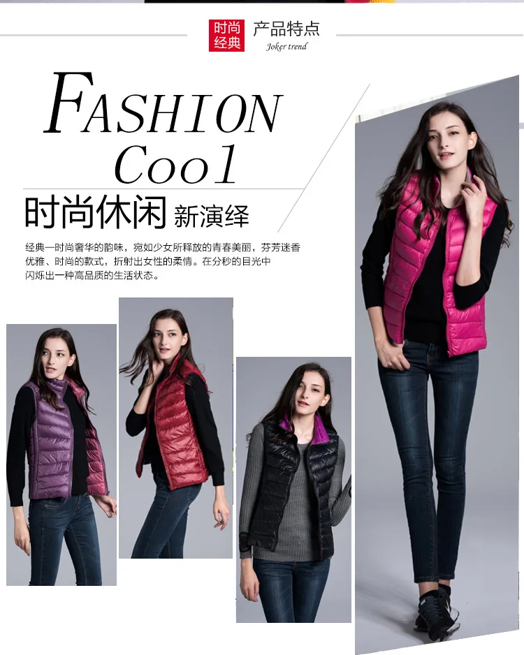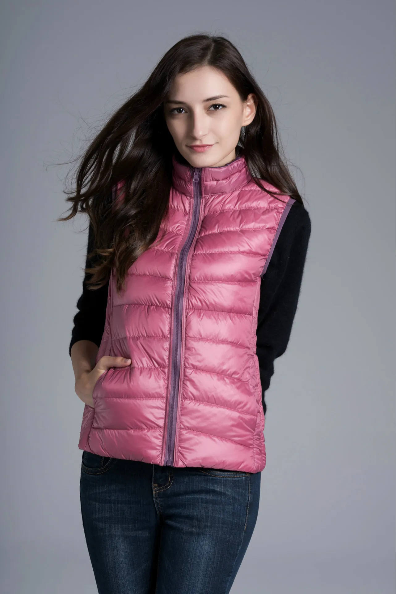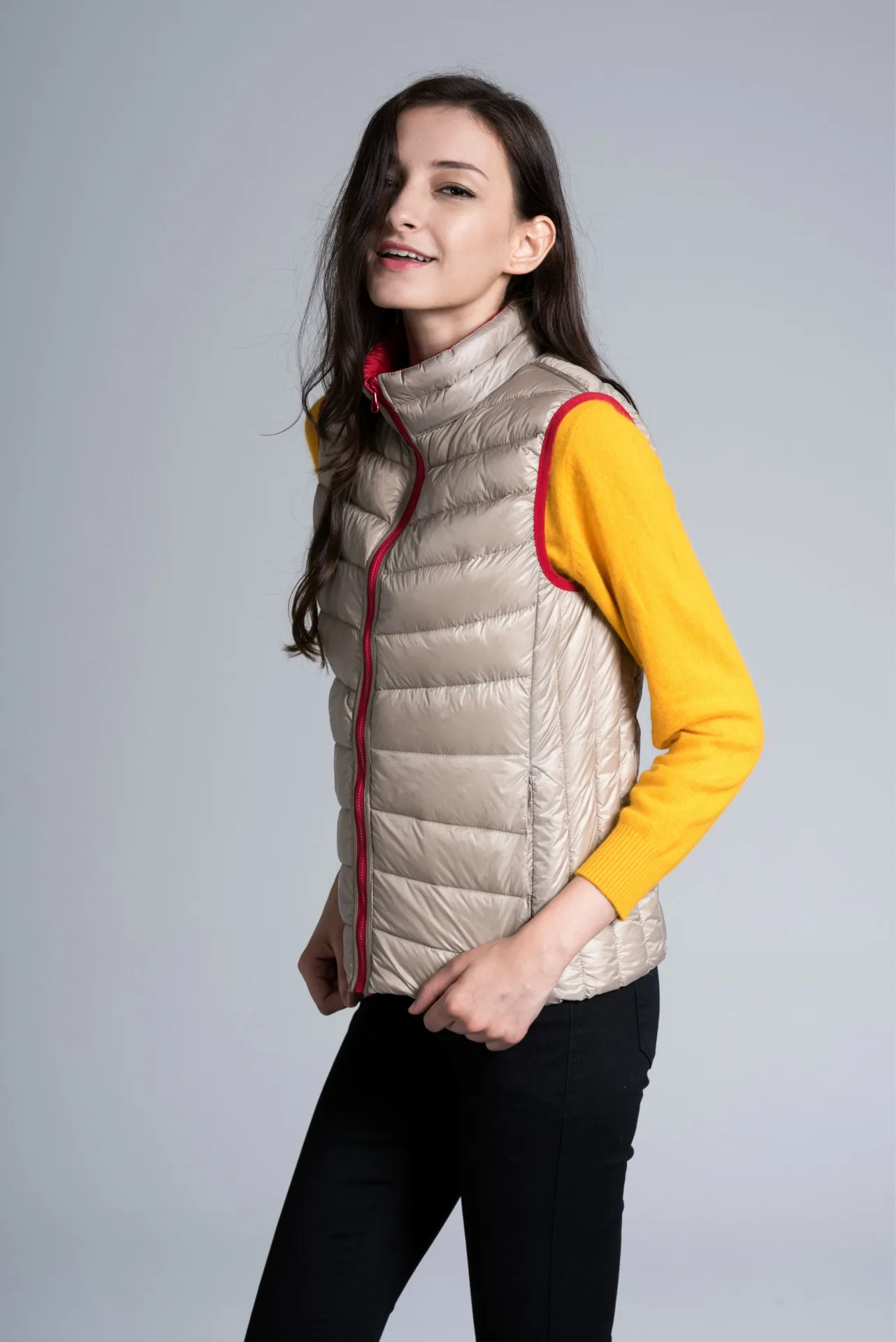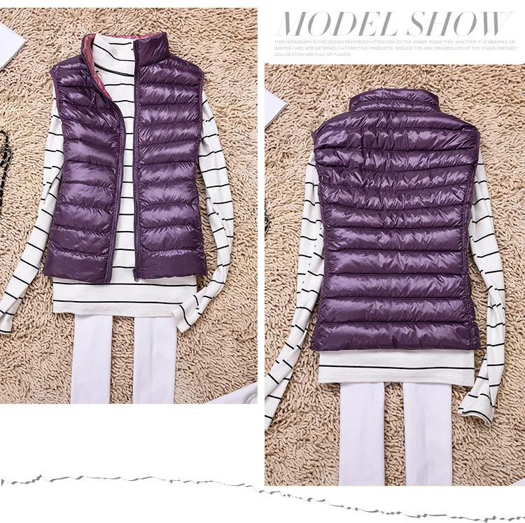 Женские осенние зимние теплые жилеты, ультра-светильник, пуховый жилет, Двусторонняя куртка без рукавов, двусторонний жилет размера плюс, портативный жилет
