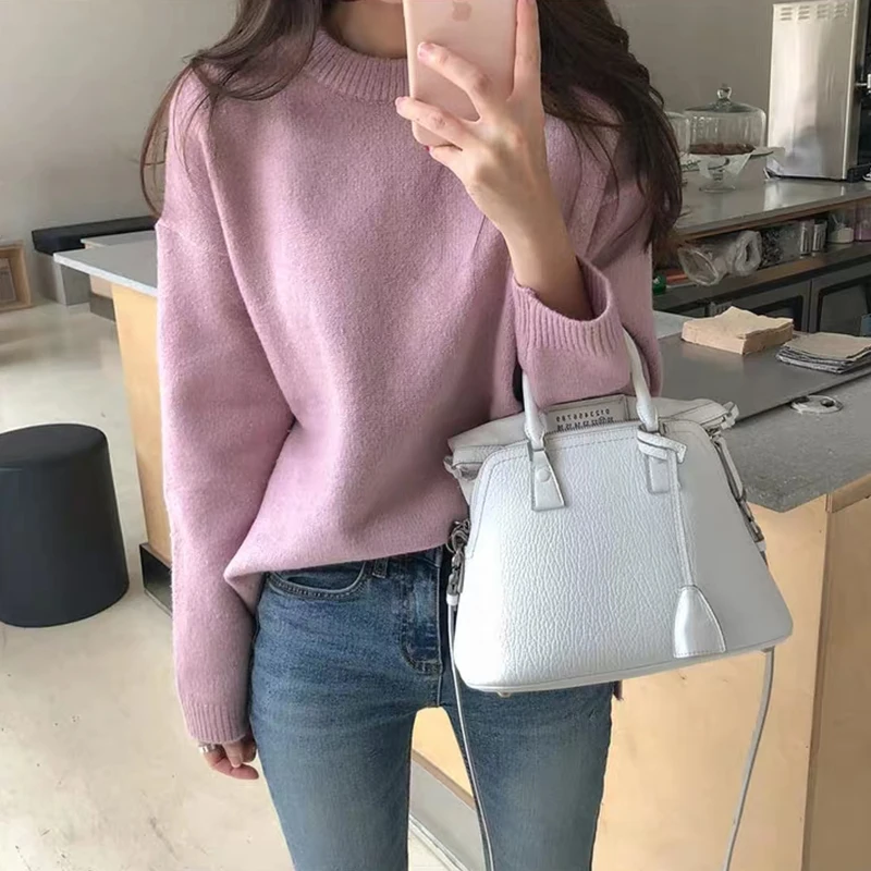 Этот уютный свитер-пуловер с удобной ложной горловиной и идеально вместительной посадкой.