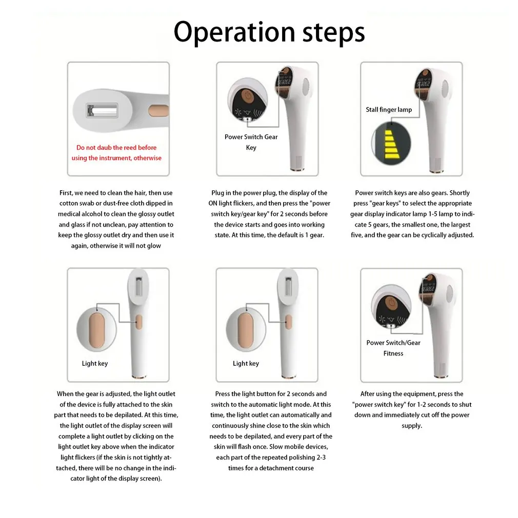 Особенности: 1. ЖК-дисплей: с первого взгляда, дисплей более четкий, управление одной кнопкой, простой и портативный. 2. IPL слабый импульсный светильник: Быстрый светильник, безболезненное удаление волос, не повреждает кожу. 3. Безопасное использование: интегрированный стабильный лазер, идеальная система фильтрации, и стремимся к безопасному удалению волос. 4. Регулируемый: пятискоростной регулируемый режим, настраиваемый в соответствии с различными частями. Описание: 1. IPL слабый импульсный светильник, быстрый светильник, безболезненное удаление волос, не повреждает кожу. Легкий и удобный, более удобный в использовании. Характеристики: принцип работы: Фотон IPL Настройка передач: 5 регулируемая длина волны до: 600-900 нм Площадь облучения: 3 см 2 цвета: белый Тип: США, Великобритания, ЕС, JA посылка включает в себя: 1 x хост 1 x держатель лампы 1 x шнур питания 1 x Руководство Примечания: Замеры сделаны вручную, поэтому возможны отклонения в пределах 0-2 мм.. Благодарим за понимание. Из-за разницы между различными мониторами изображение может не отражать фактический цвет изделия. Пожалуйста, поймите, спасибо!