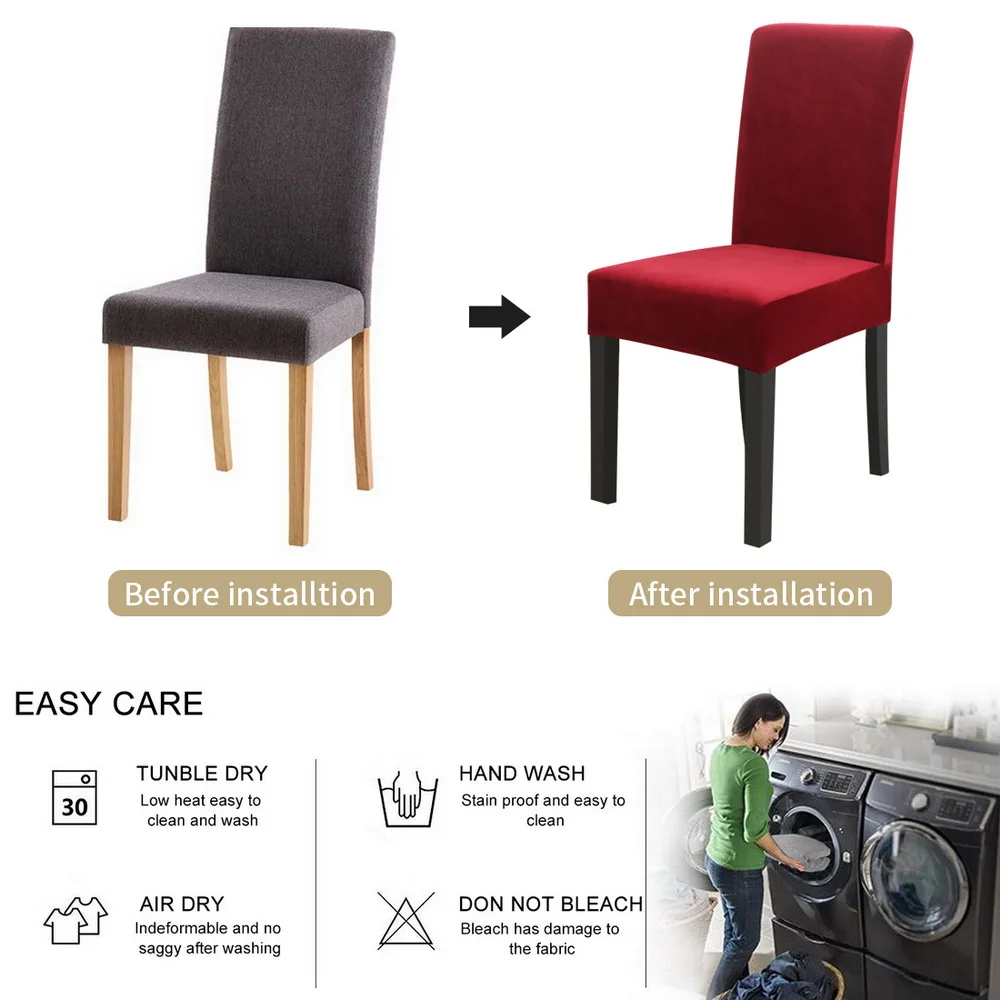 Широкое применение: чехол для стула один размер подходит для большинства. Он используется для отеля, свадебного банкета, ужина, встречи, торжества, церемонии, украшения семейной столовой.
