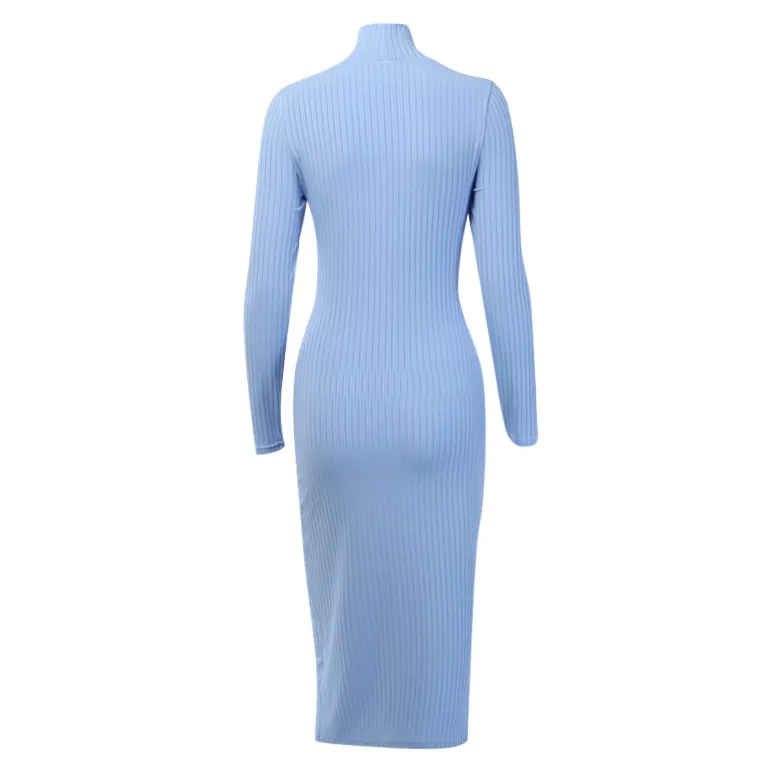 Женское трикотажное мини платье с длинными рукавами круглым вырезом и золотыми