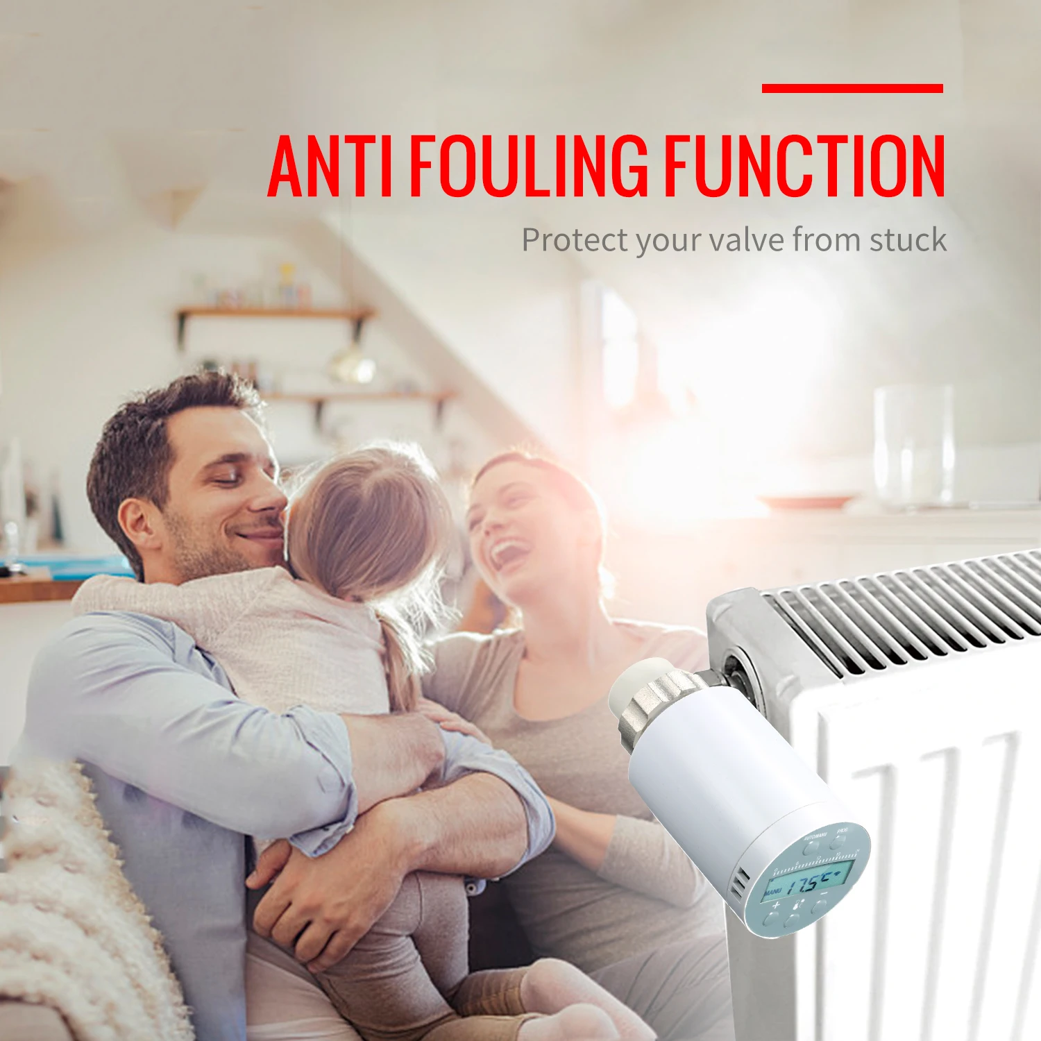 Компактный дизайн --- небольшой цилиндрический корпус с ЖК-дисплеем и 5 кнопками облегчает чтение и установку значения в темноте. Крепление на радиатор нелегко разбиться.
