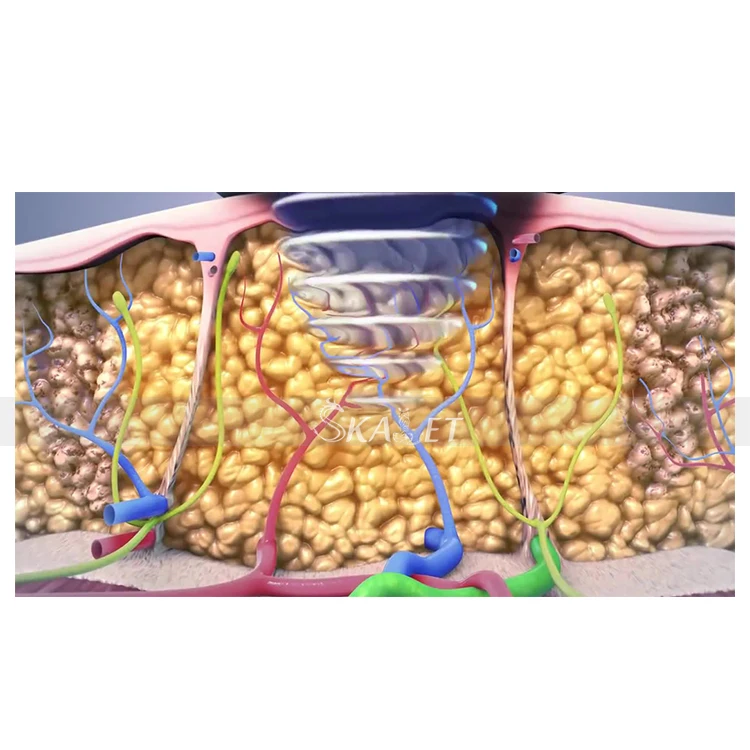 С общей сильной звуковой волновой головкой, мощная звуковая волна unoisetion 40000HZ может быть излучается, чтобы вибрировать жировые клетки на максимальной скорости и производить множество вакуумных воздушных карманов внутри и снаружи жировых клеток, устойчиво воздействует на жировые клетки, чтобы генерировать интровертный взрыв и дезинтегрировать триглицерид в глицерин и свободные жирные кислоты. Затем радиочастотные волны с частотой 1 МГц используются для выматывания интегрированного глицерина и свободных жирных кислот через гепатотентеральную циркуляцию. Наконец, вакуумные RF и энергетические электроды используются для позиционирования и подтягивания жира. В физике он известен как «кавитация». Микропорный интроверtedblast внутри и снаружи клетки может привести к усиленному молекулярному движению и более высокому уровню энергии, и это, наконец, приведет к разрыву жировых клеток и там достигнет эффекта бодибилдинга и потери веса.