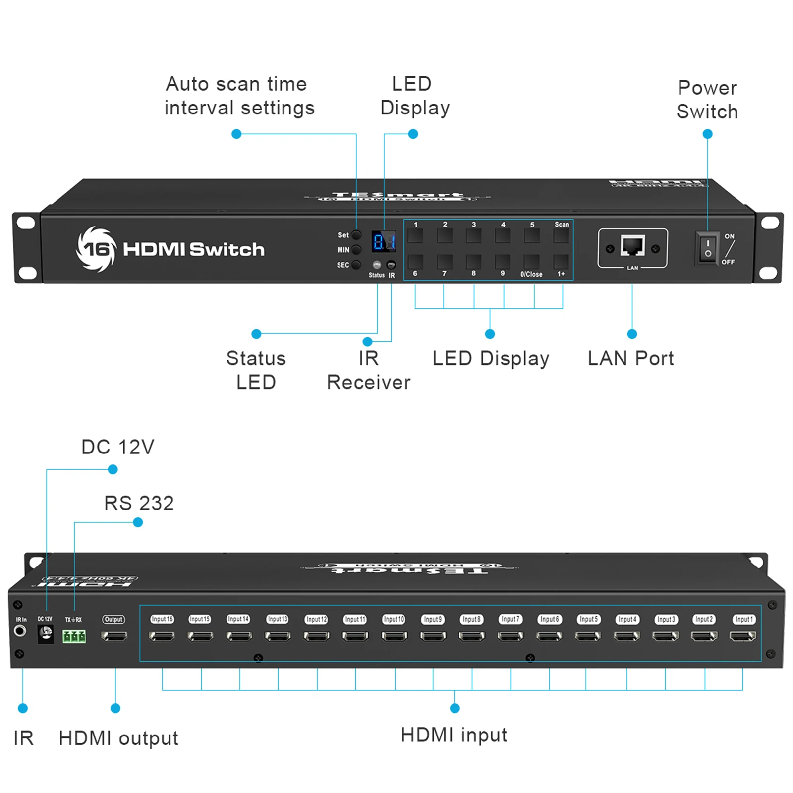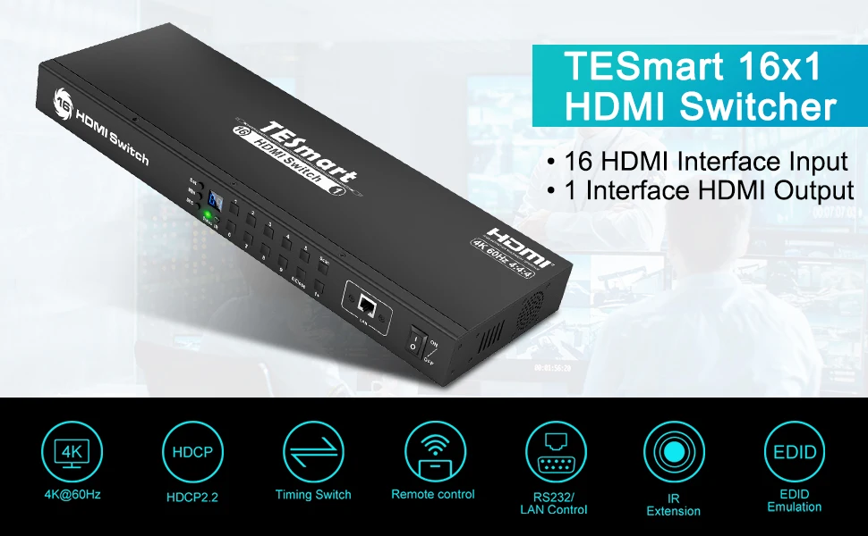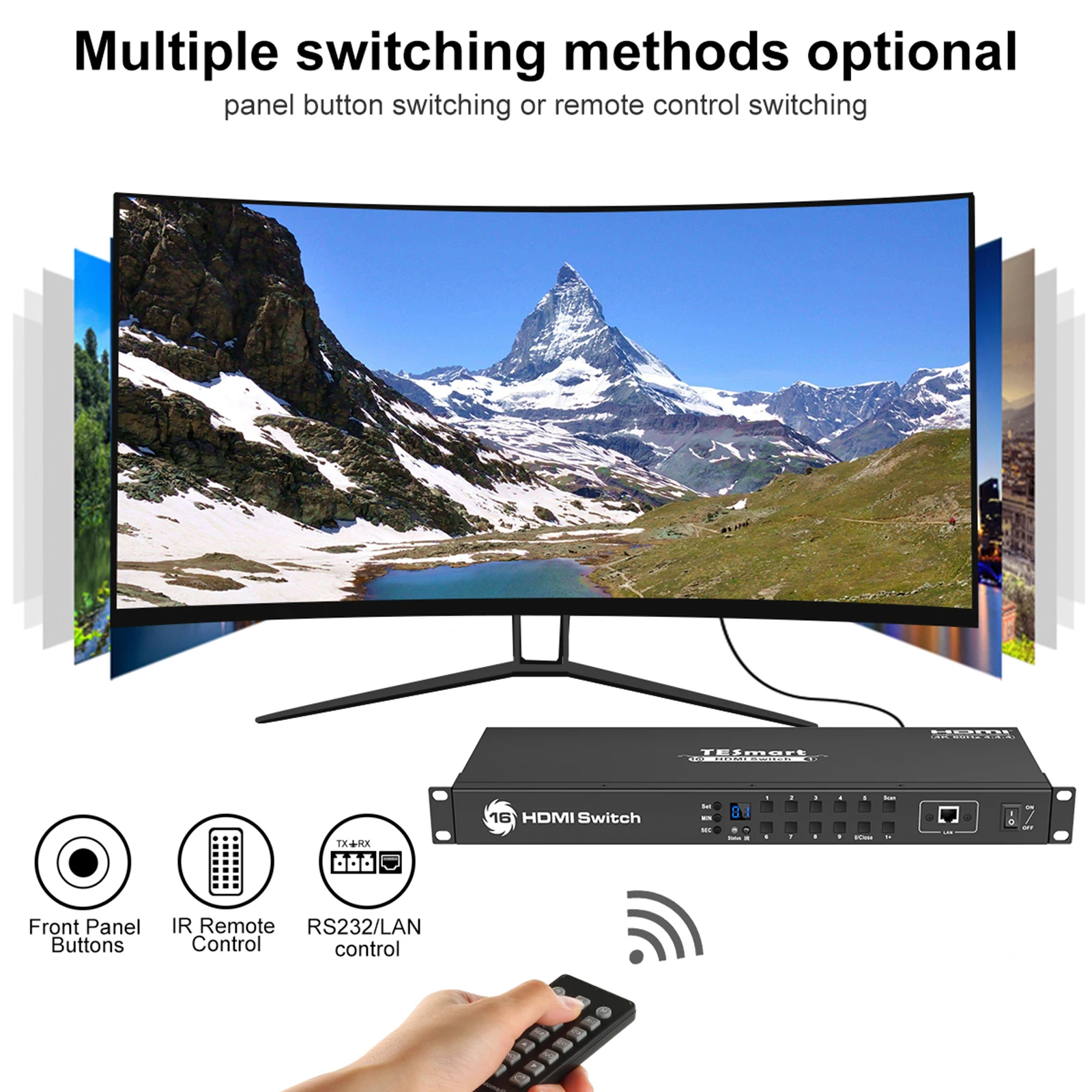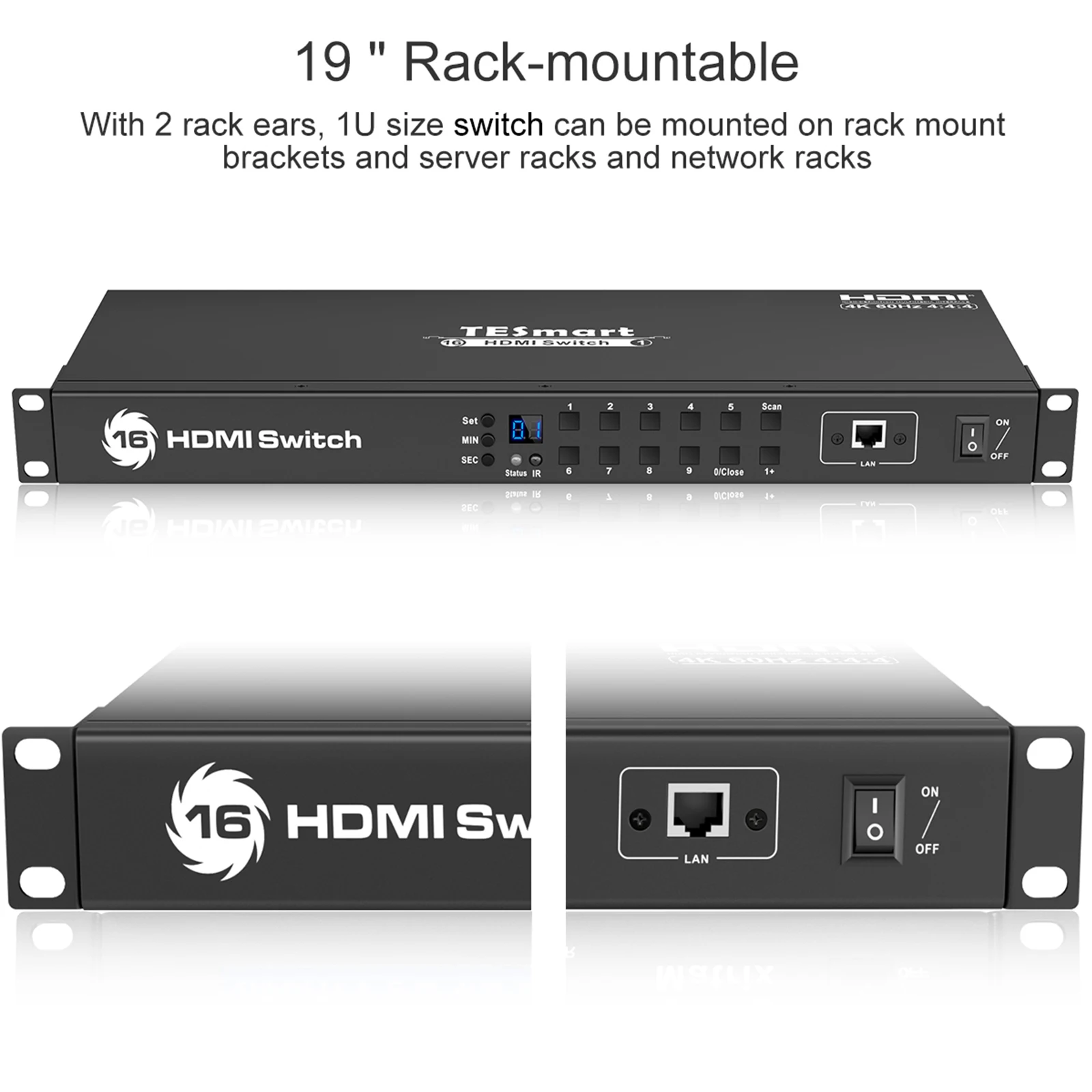 TESmart 16x1 HDMI переключатель Поддержка 4K @ 60Hz 4:4:4 HDCP 2,2 RS232 или IP команды
