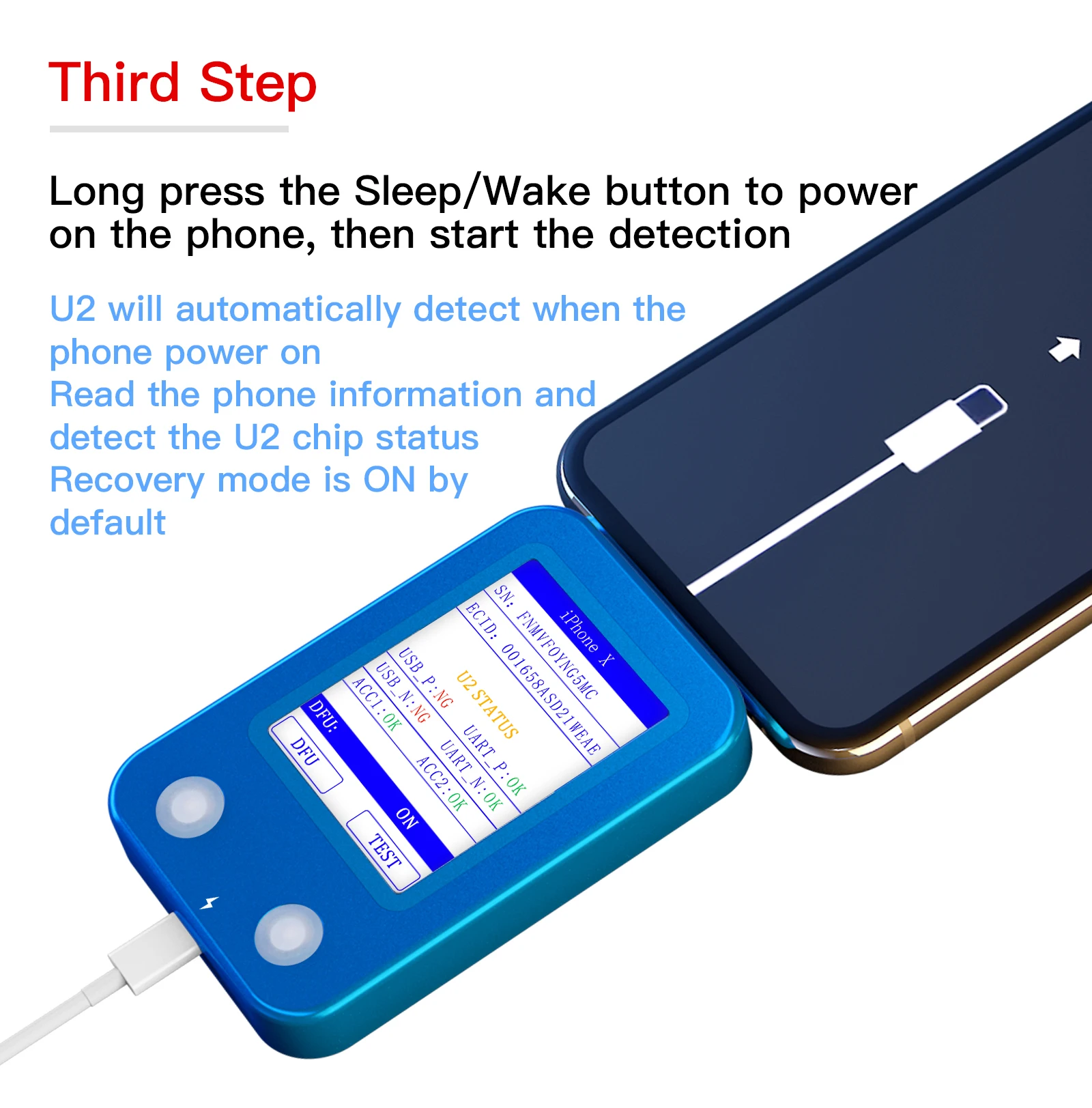 Для iPhone U2 Быстрая зарядка детектор неисправностей, может использоваться для чтения SN для iPhone без подключения к Интернету, iphone U2 IC детектор неисправностей может быстро обнаружить ошибки U2 IC, быстрый детектор U2 может считывать SN, даже если iPhone заблокирован идентификационным кодом или отключен