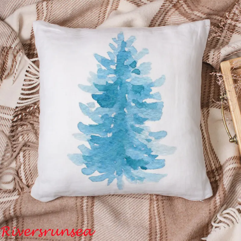 Минималистичный Декор Акварельная синяя Подушка нордическая