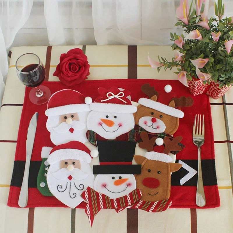 New-6pcs держатель для столовых приборов, полотенца, ножи, вилка, ложка, милая посуда в форме Санта Клауса для кухни, украшение, Рождественский стол (6 P