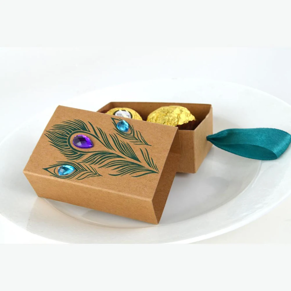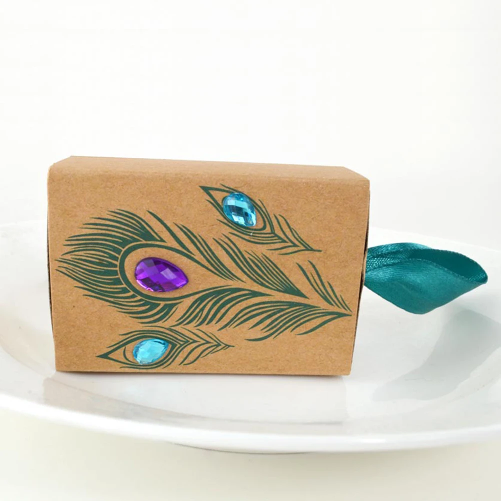 40 шт павлиньи перья красочные алмазные конфетные коробки крафт-бумага выдвижные подарочные коробки для шоколада вечерние коробки для свадебного фестиваля