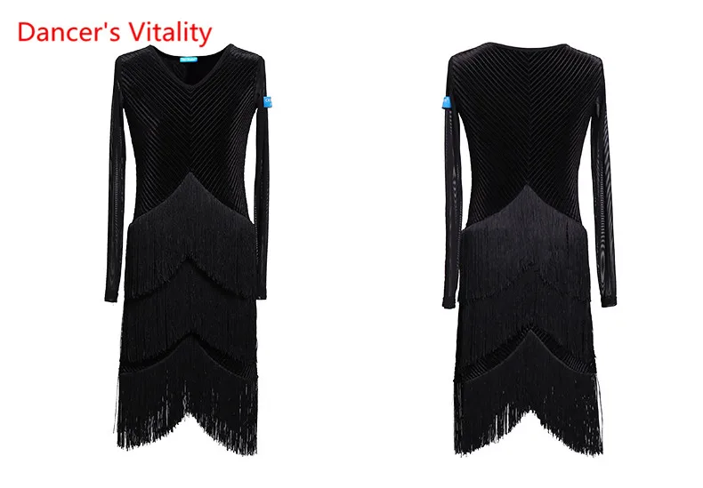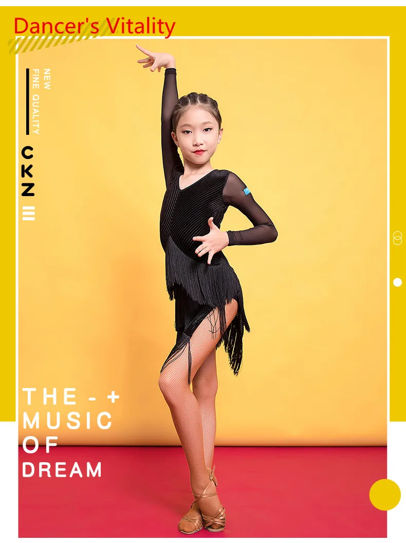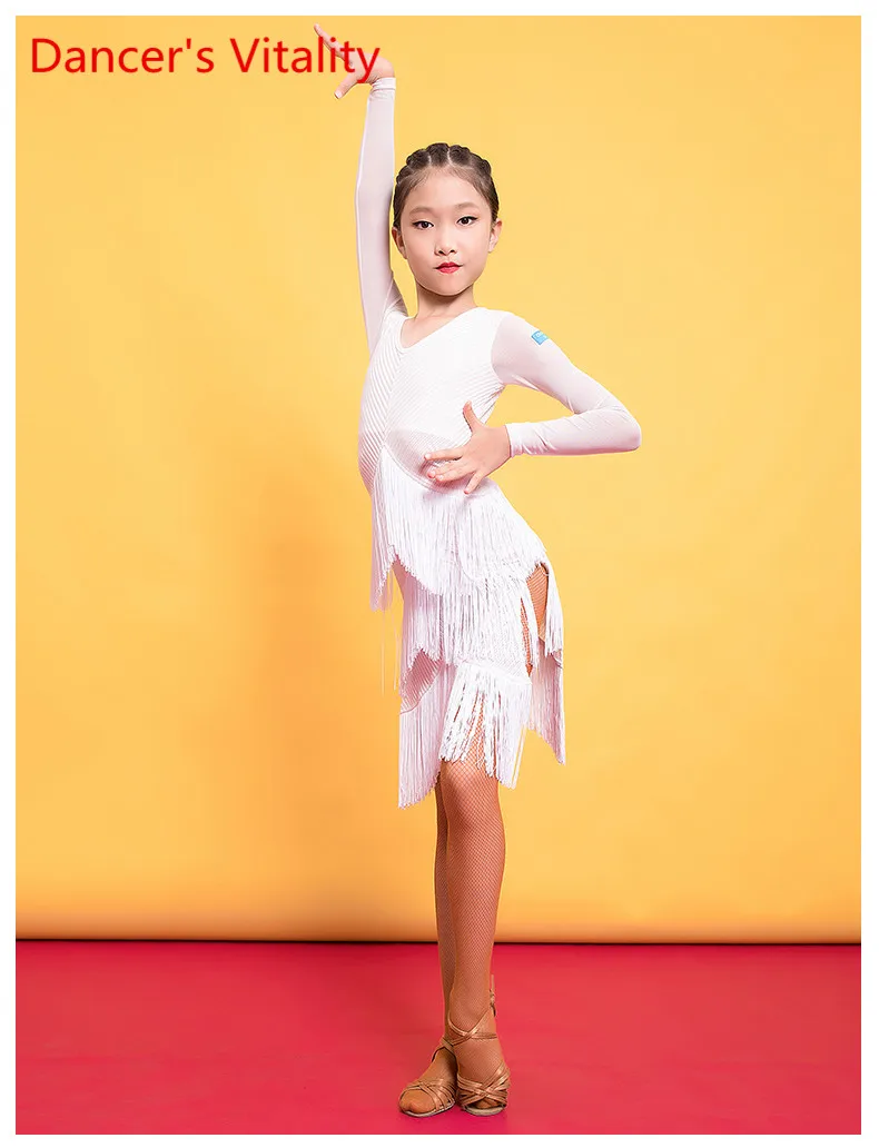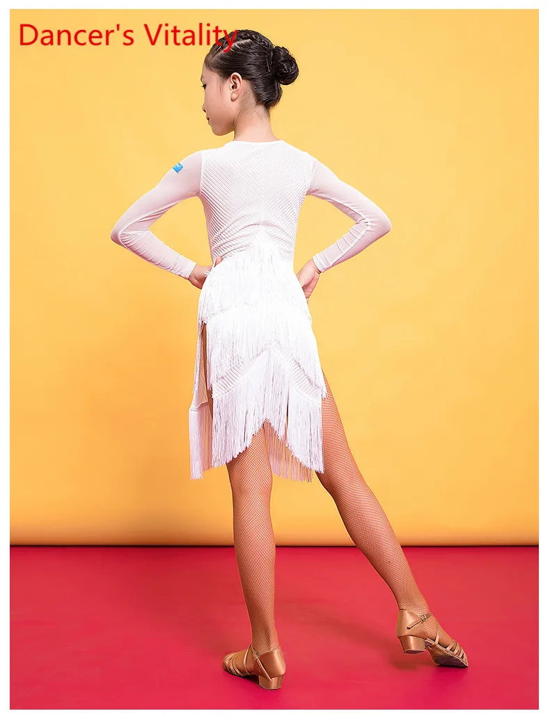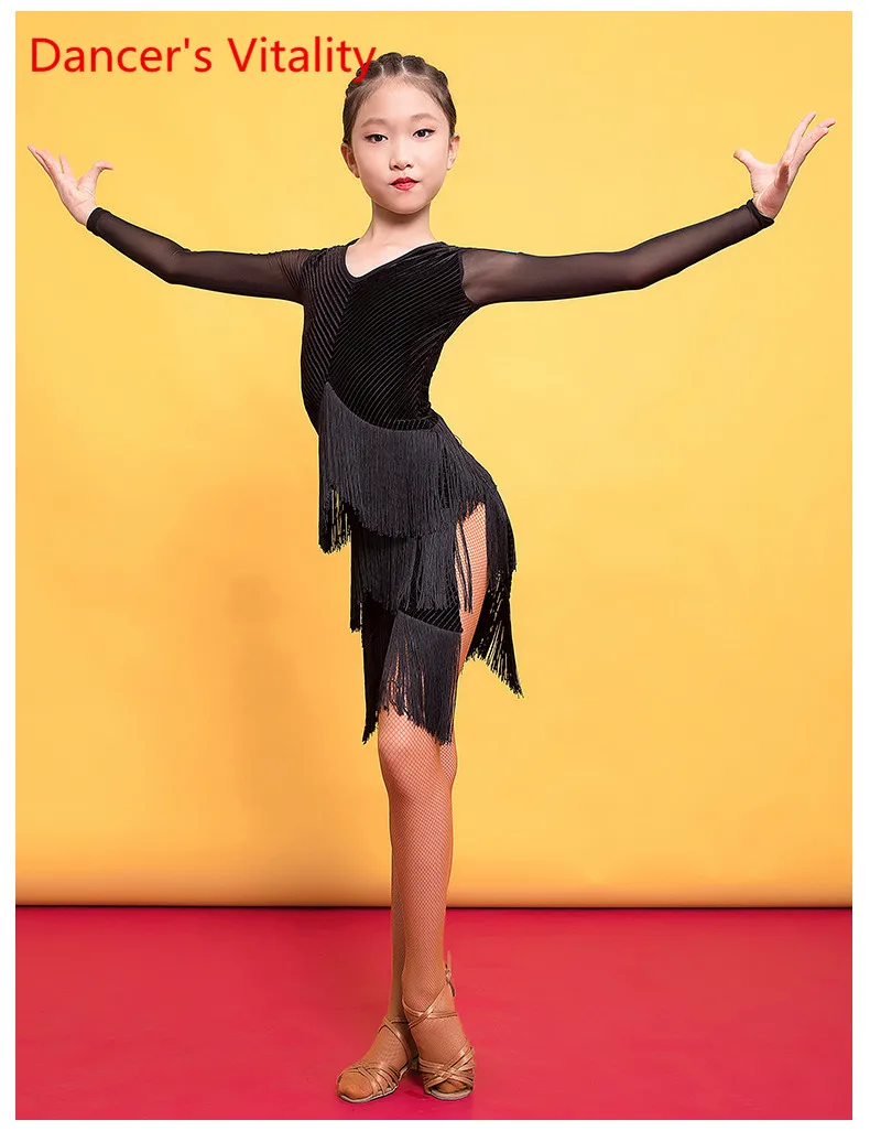 Детская одежда для латинских танцев Осень и зима Платье с кисточками Новая женская детская одежда для профессиональных конкурсов