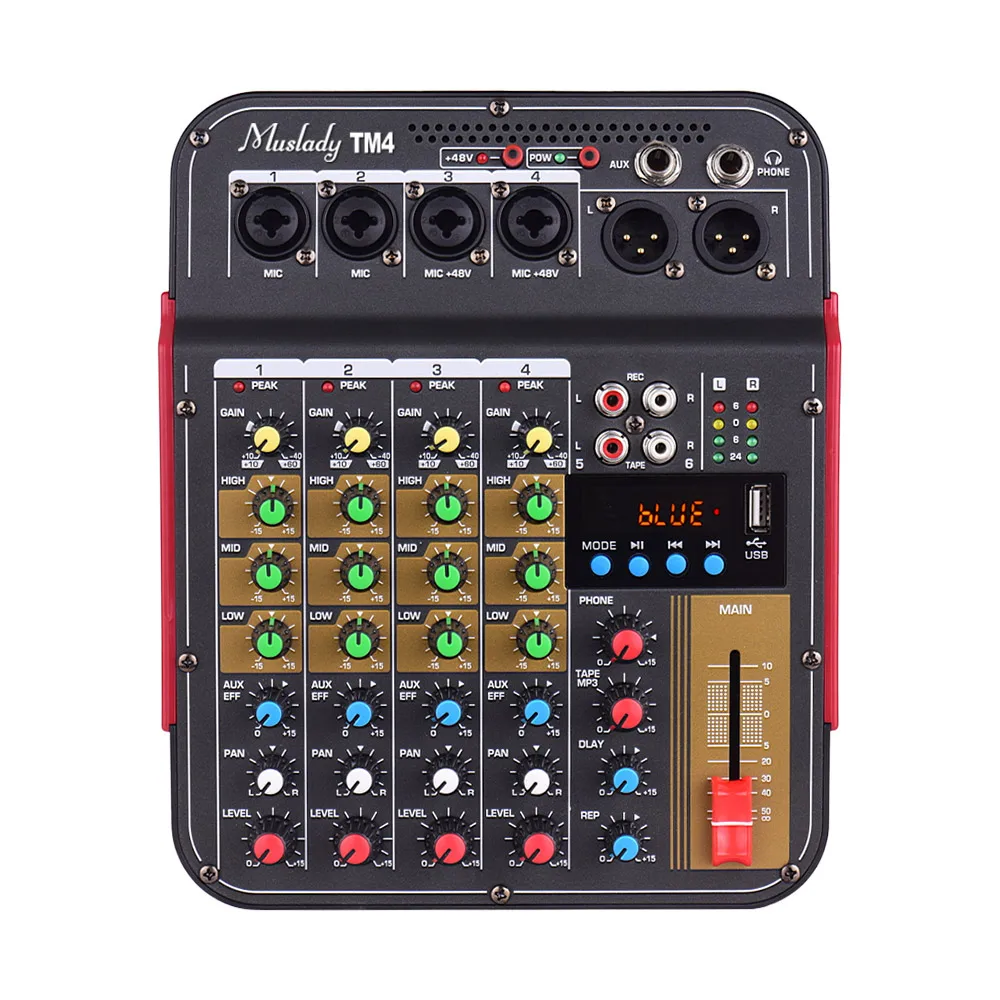 Четырехканальный миксер Muslady TM4, компактная система для студийной записи, DJ оборудование, онлайн-трансляция и т. д.