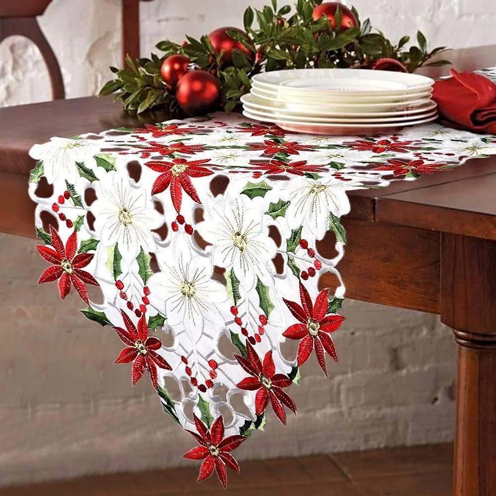 Рождественская настольная дорожка украшение для стола Рождественская вышитая настольная дорожка Poinsettia Холли лист украшение стола #45