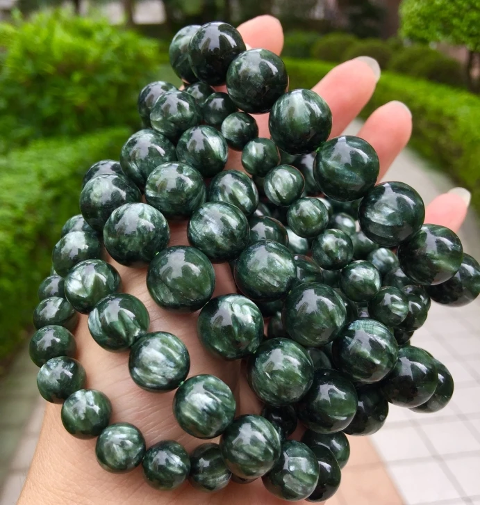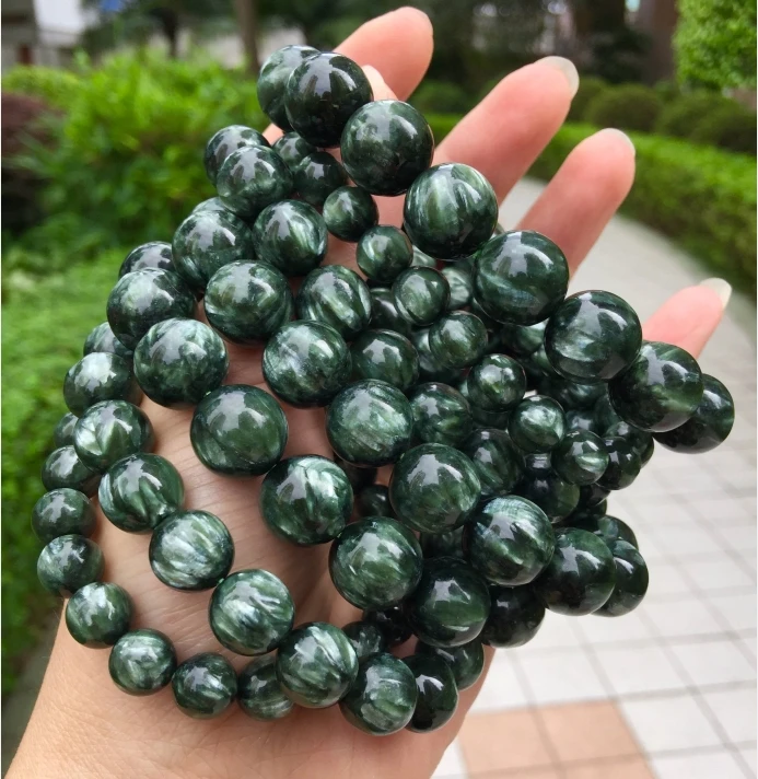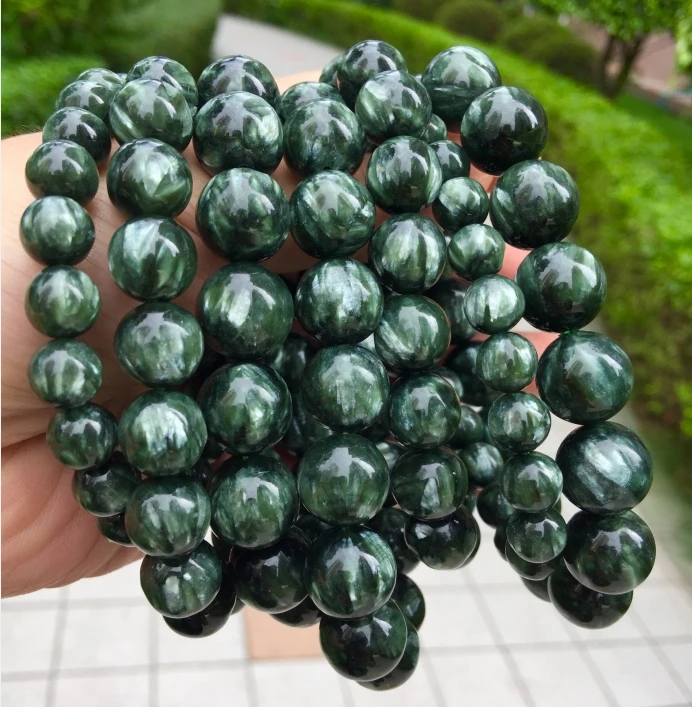 Женский браслет из натурального серафинита, браслет из круглых бусин с зелеными драгоценными камнями AAAAA
