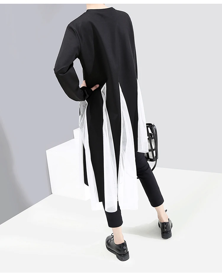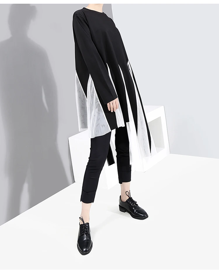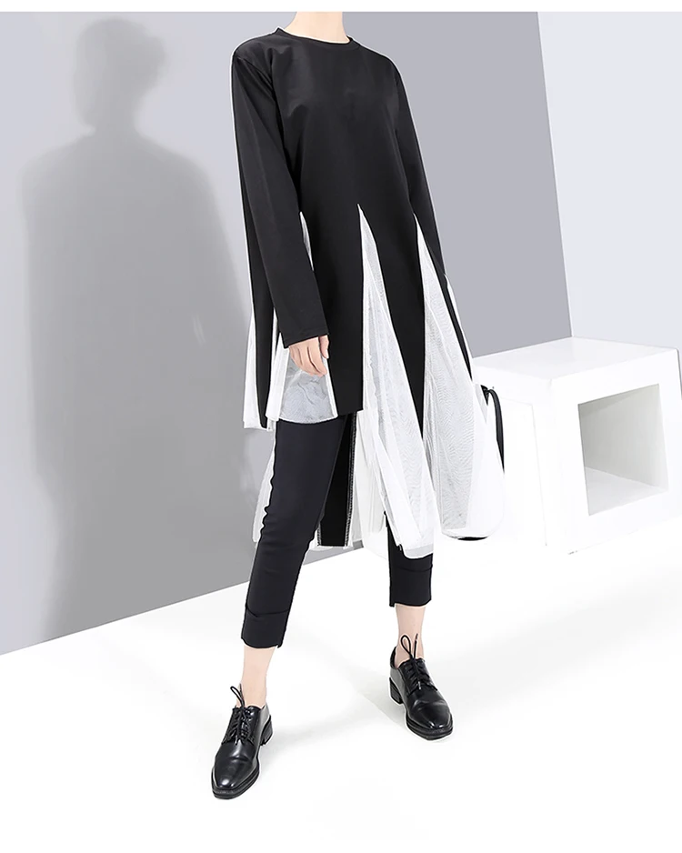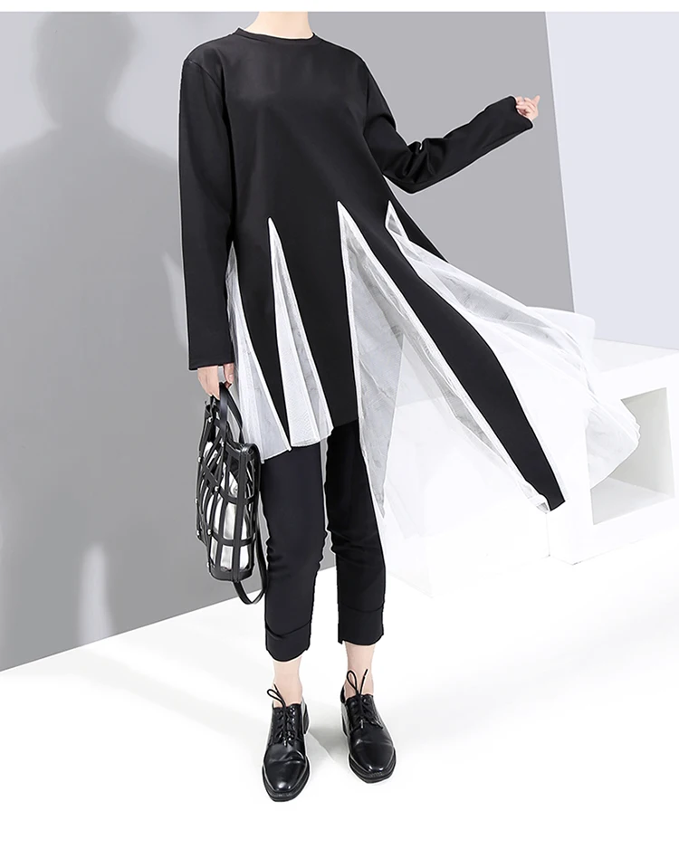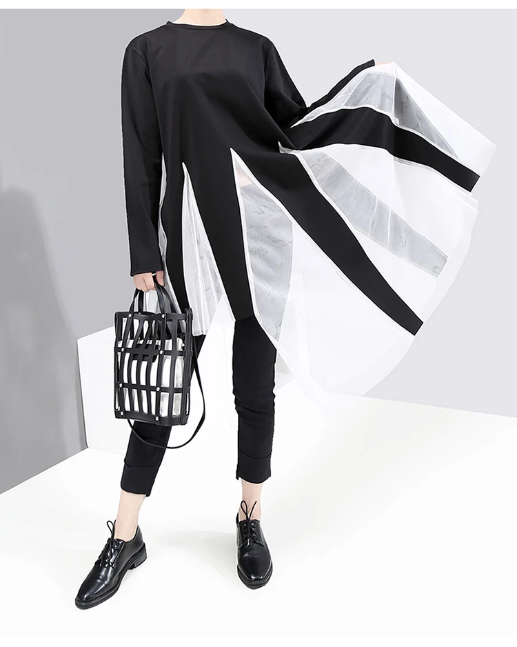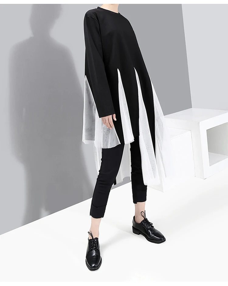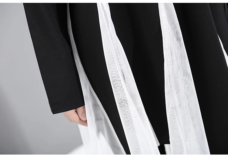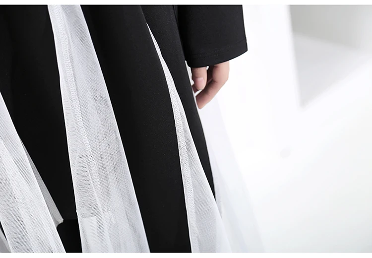 Новинка 2019, корейский стиль, женское асимметричное платье хитового цвета с длинным рукавом, черное, белое, лоскутное, для девушек, уникальное, миди, праздничное платье 5501