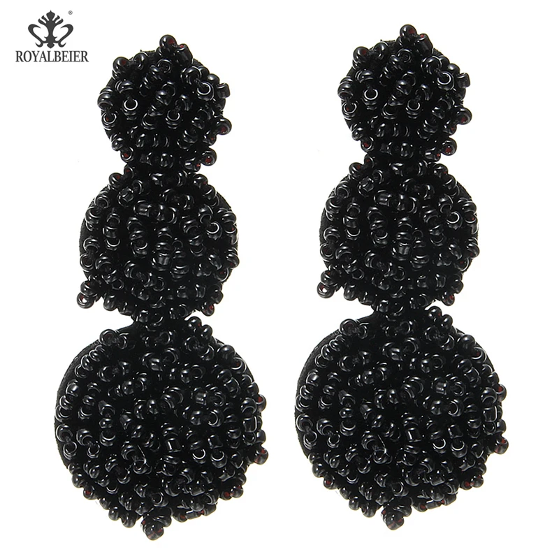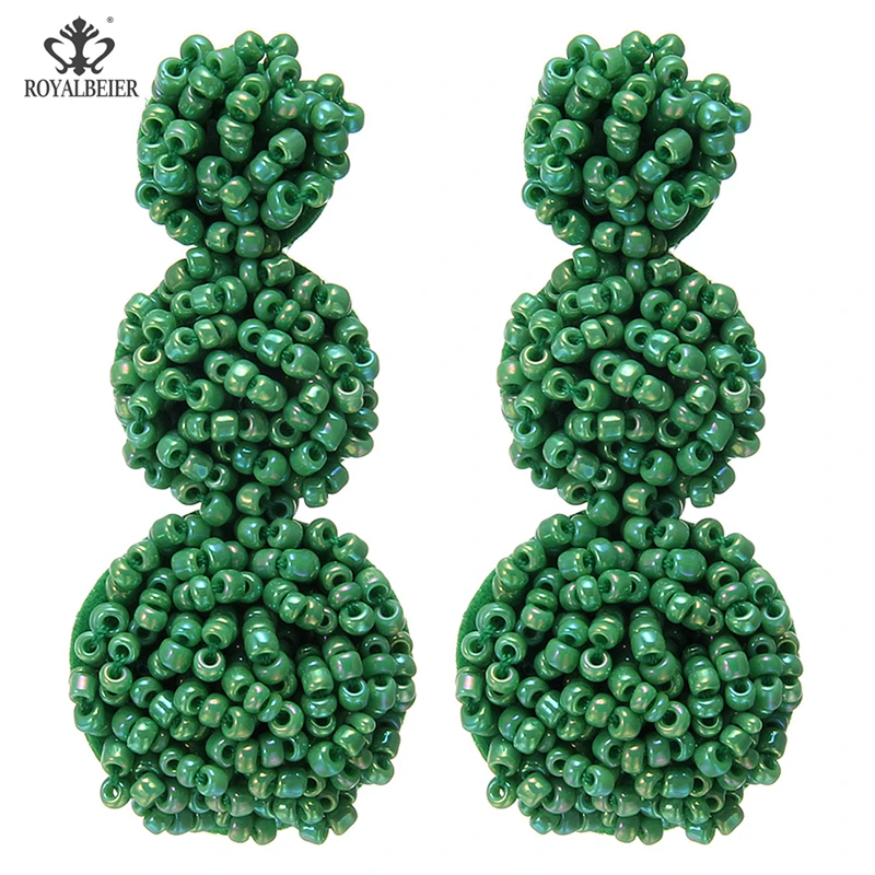ROYALBEIER Bohemia Jewelry Multicolor Rainbow Ball Long Statement Hanging Earring Handmade Beaded Tassel Gifts Fashion Earings