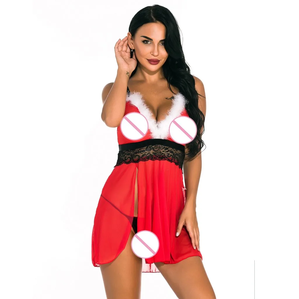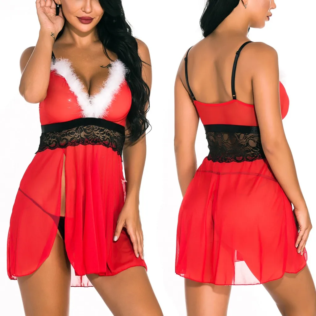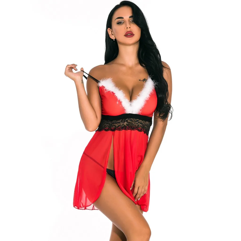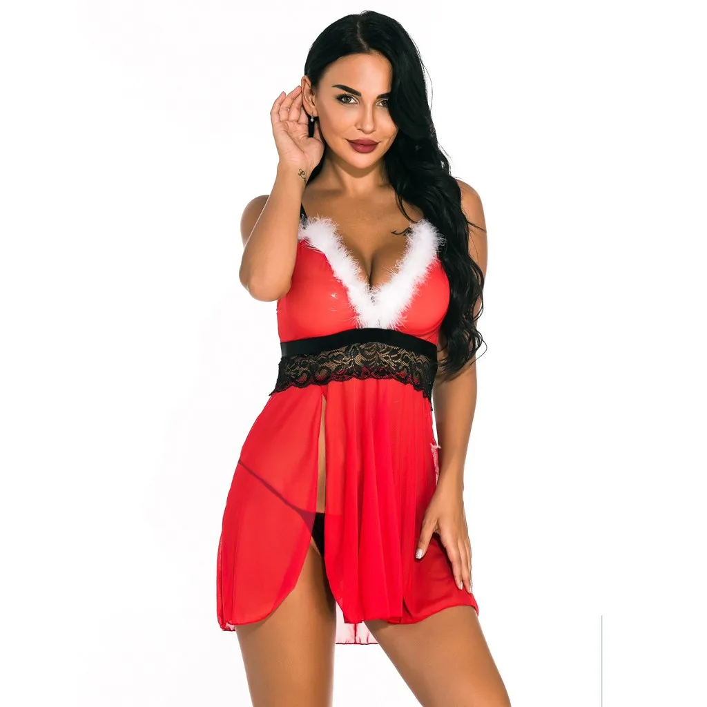 Новое рождественское женское нижнее белье, сексуальная кружевная ночная рубашка, одежда для сна с стринги