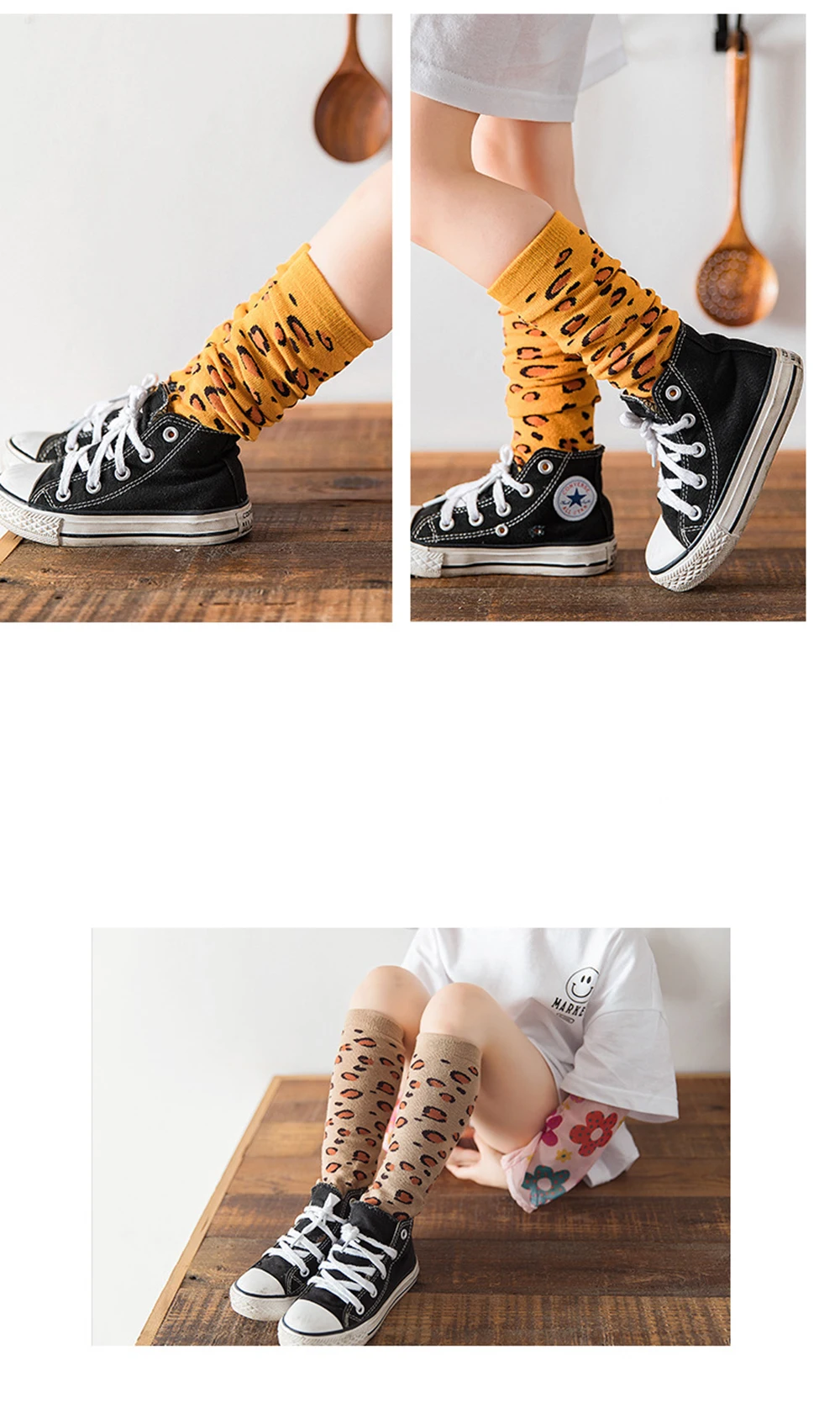 Модные леопардовые носки для маленьких девочек с изображением лотоса, 6 цветов зимние носки до колена Детские Хлопковые гольфы для малышей Модный дизайн, 100% новый бренд и высокое качество! Материал: хлопок